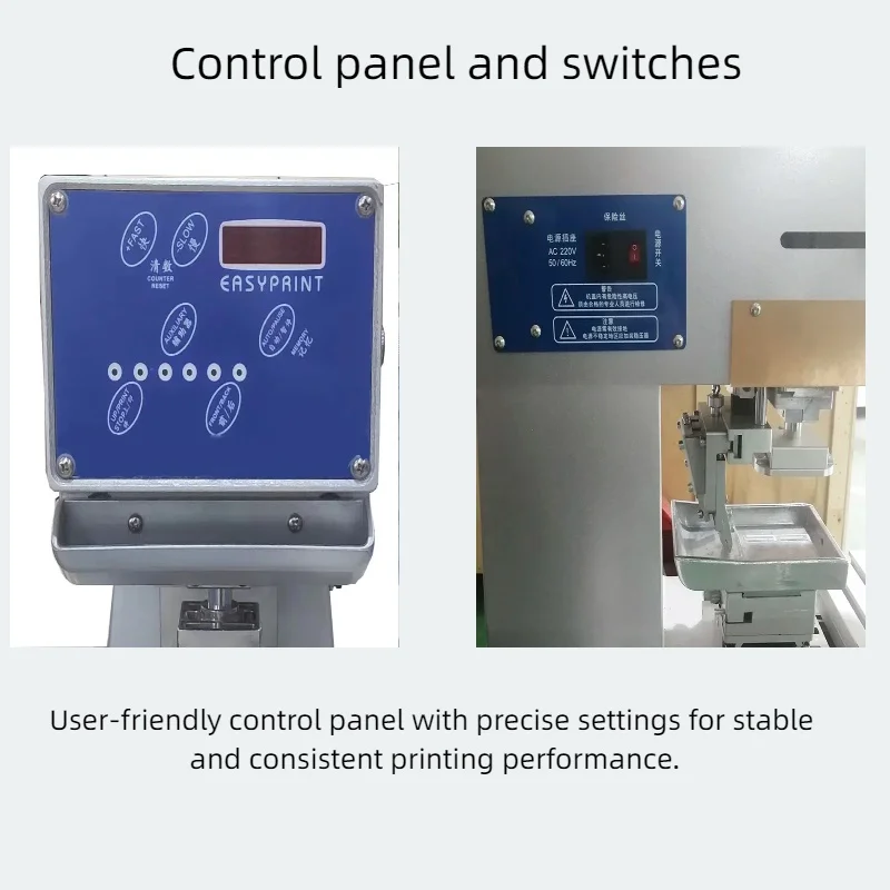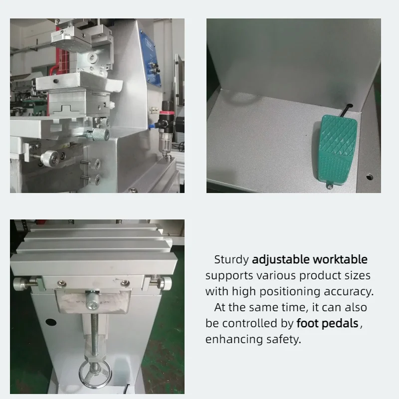 This semi-automatic single color pad printing machine is designed for precise and efficient printing on irregular, curved, or flat