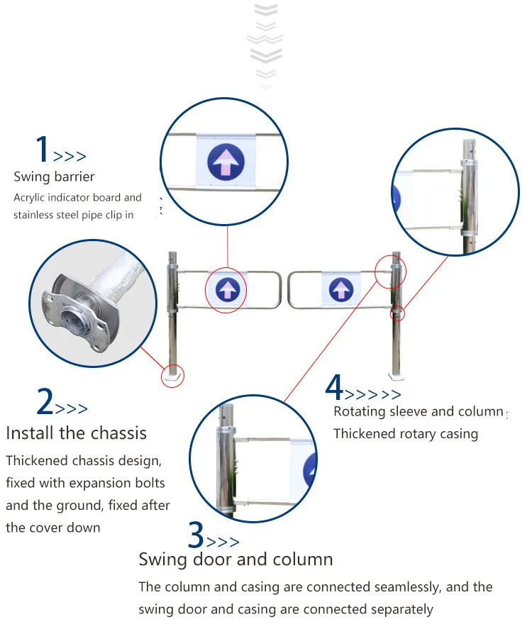 A manual swing gate is an access control solution that restricts pedestrian flow by effectively blocking off pathways. The gate operates manually, allowing pedestrians to pass only through authorized channels while keeping unauthorized personnel out.
