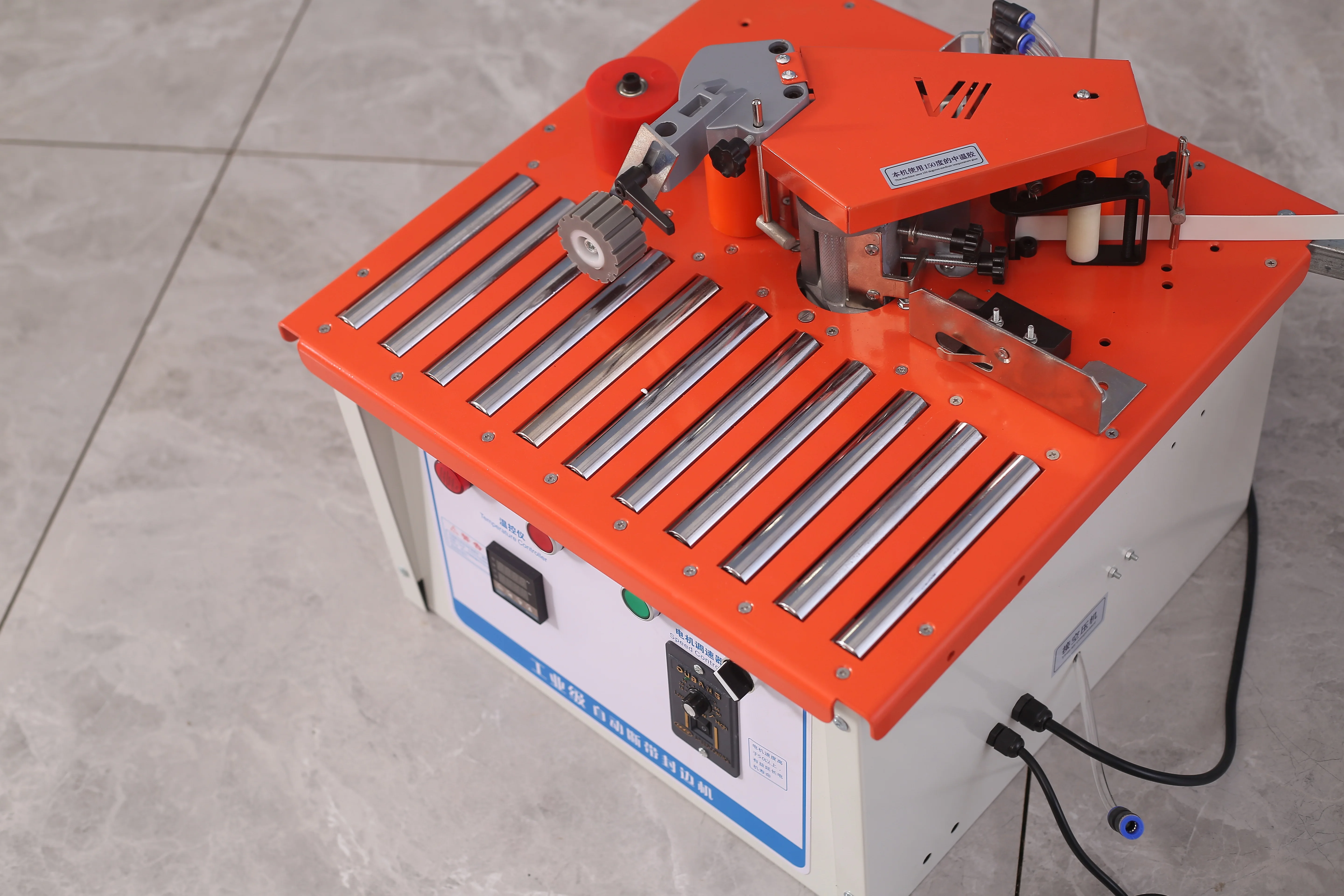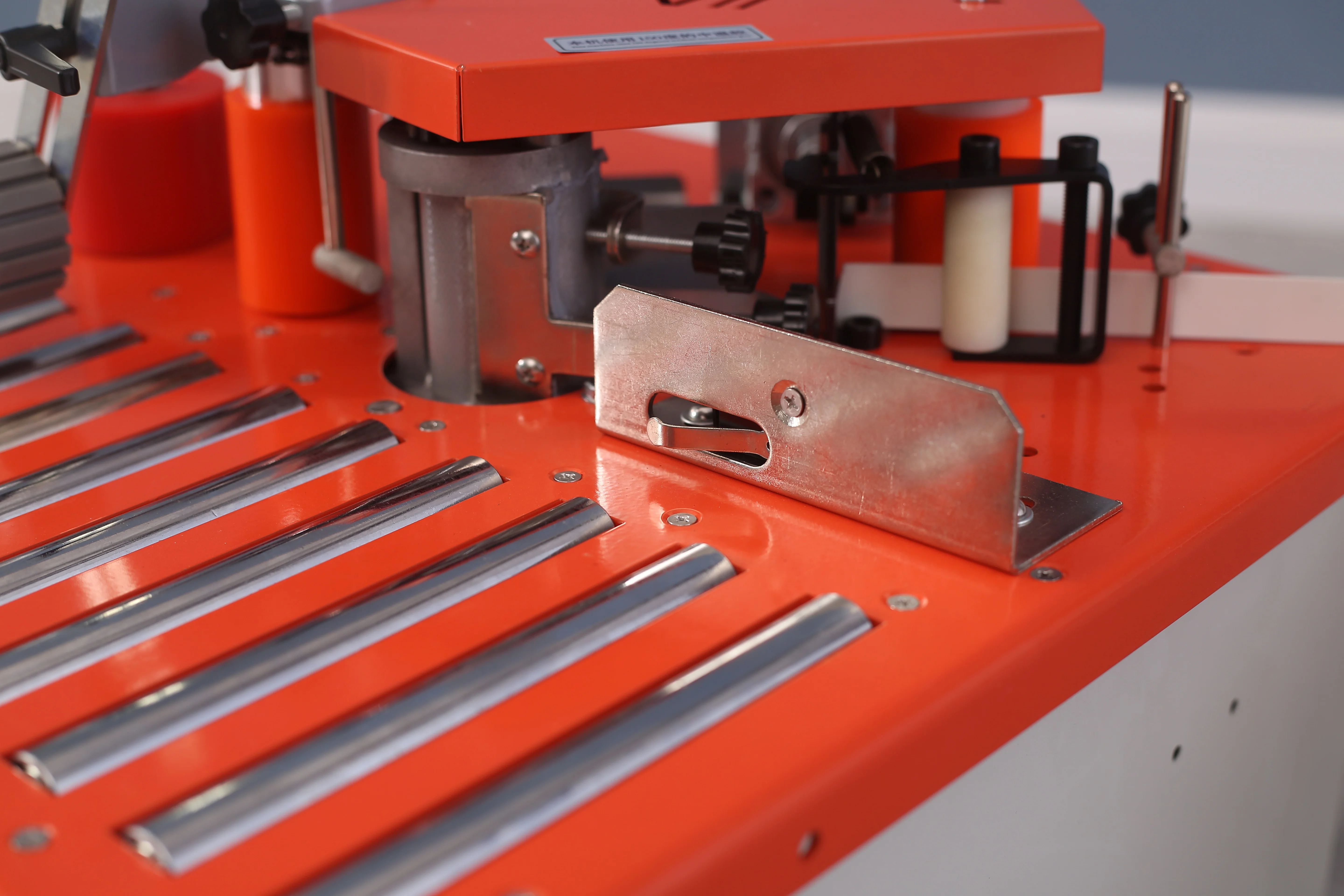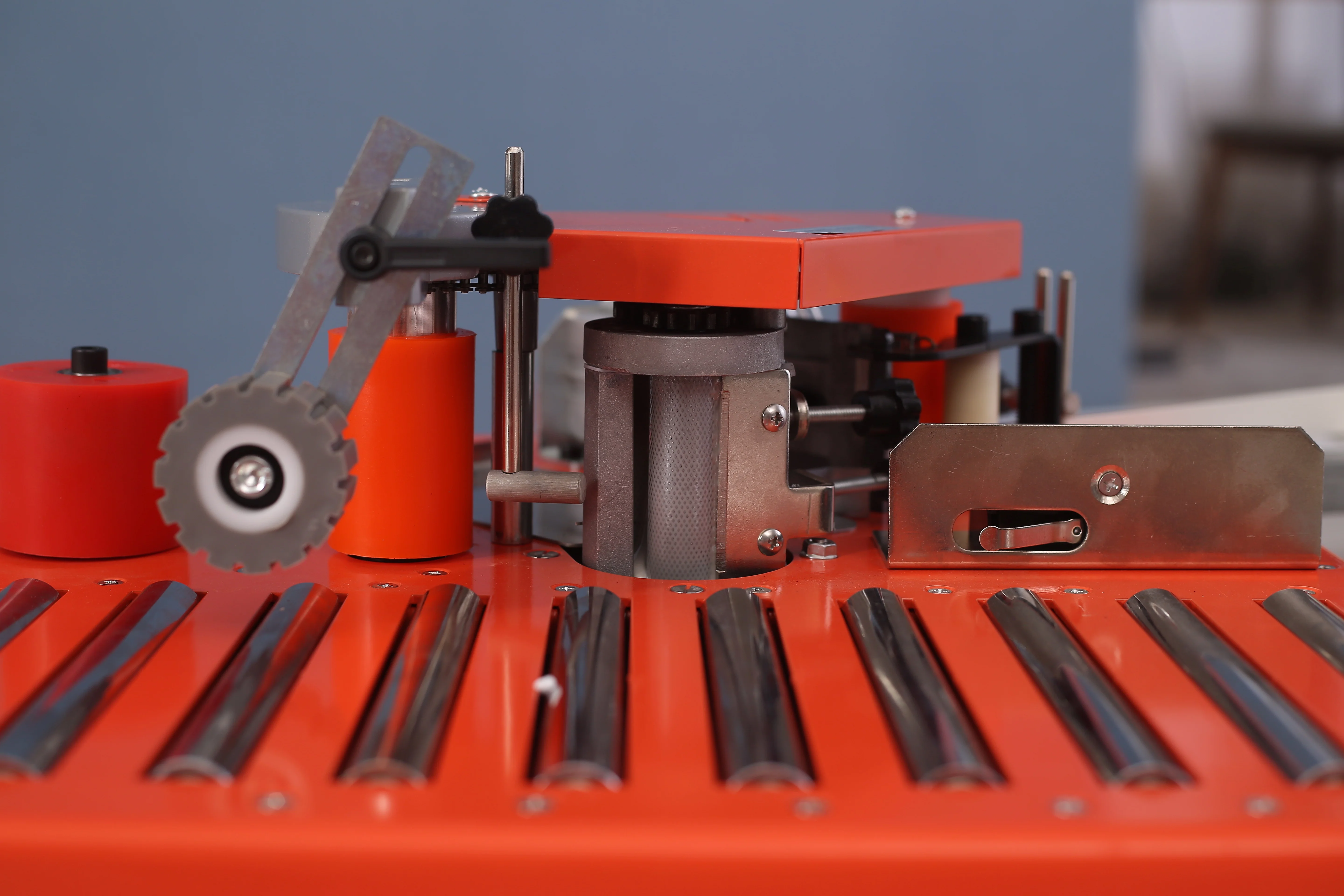WANJIA Sliding Table Mini edge banding machine is suitable for home decoration use. Small size, easy to carry. It is a Industrial grade automatic edge cutting and sealing machine and double-sided gluing. Curved and straight boards dual-purpose. The machine comes with a large platform and is effortless to seal the big board. 11 rollers are added to the platform to make the push plate smoother.