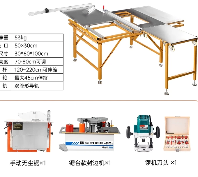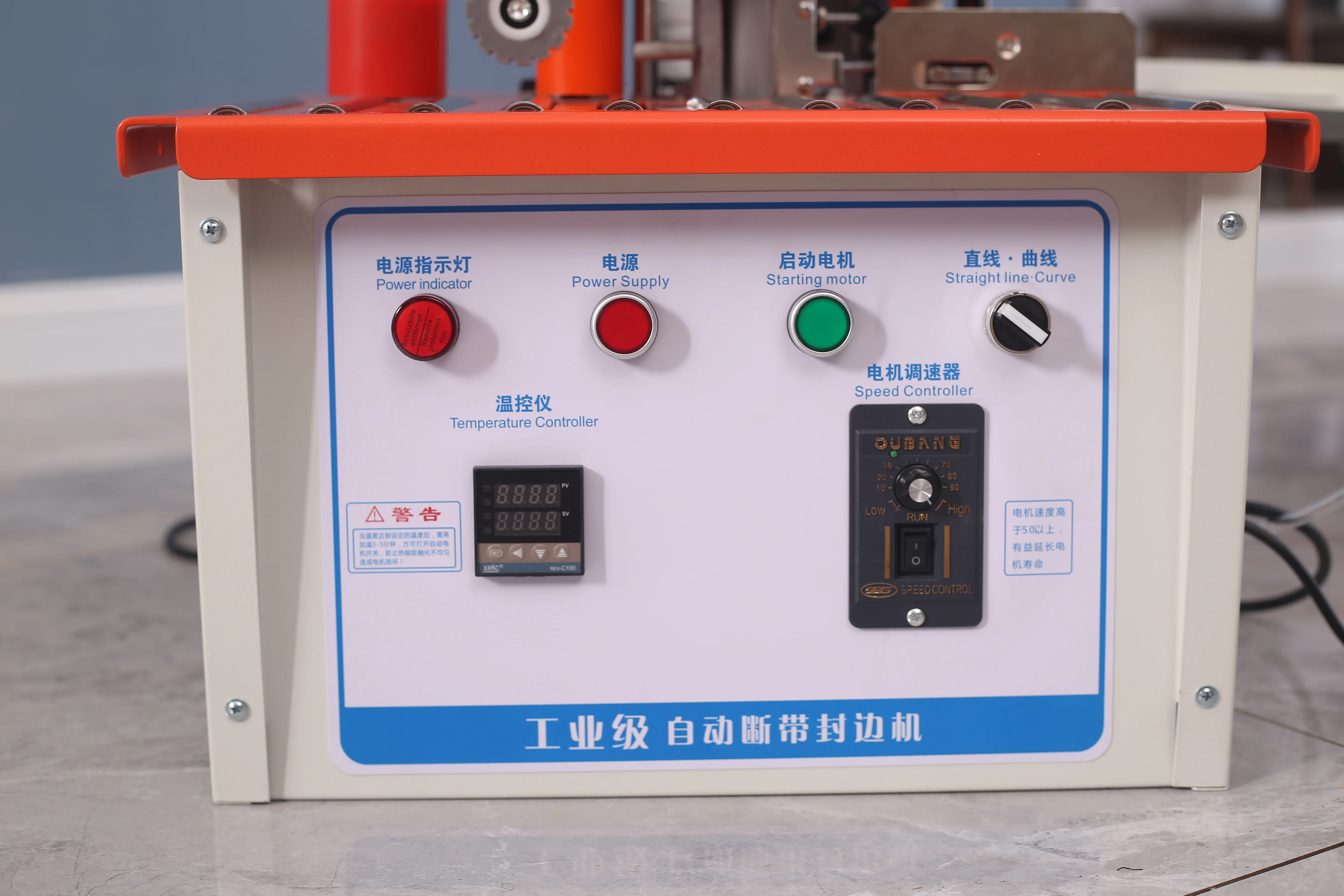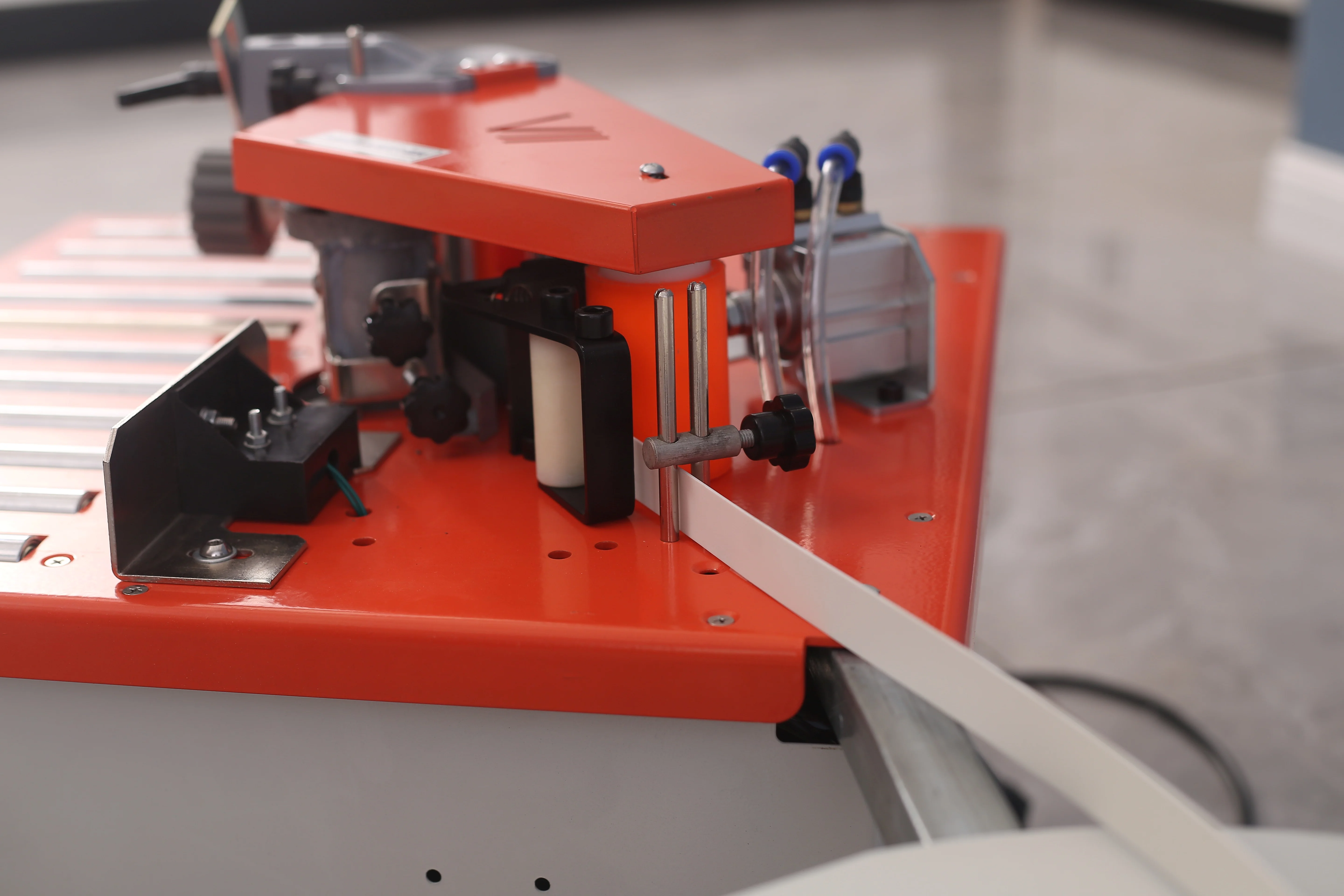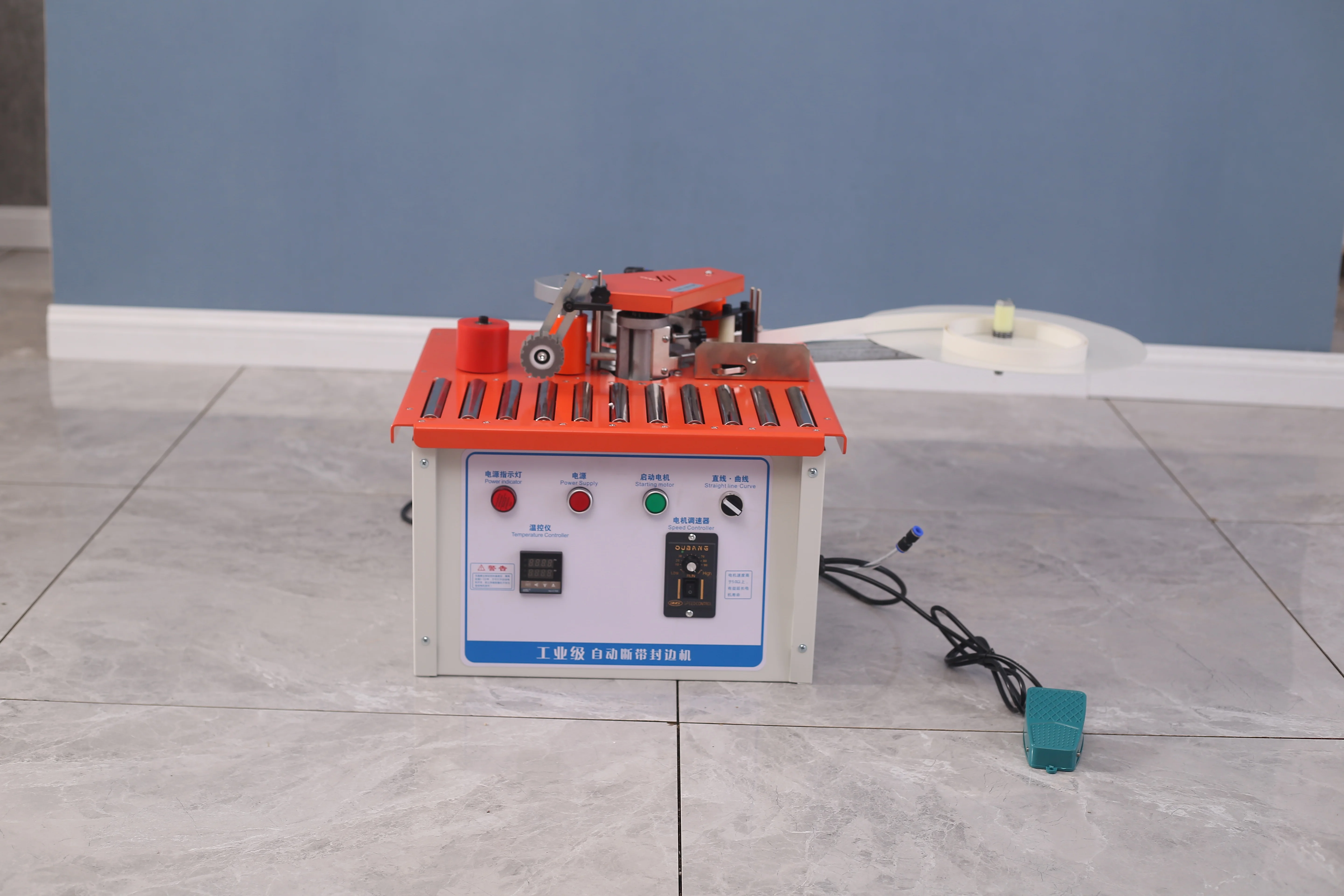 WANJIA Sliding Table Mini edge banding machine is suitable for home decoration use. Small size, easy to carry. It is a Industrial grade automatic edge cutting and sealing machine and double-sided gluing. Curved and straight boards dual-purpose. The machine comes with a large platform and is effortless to seal the big board. 11 rollers are added to the platform to make the push plate smoother.