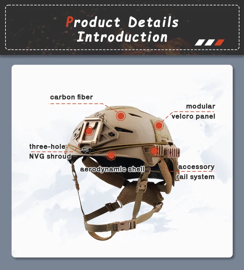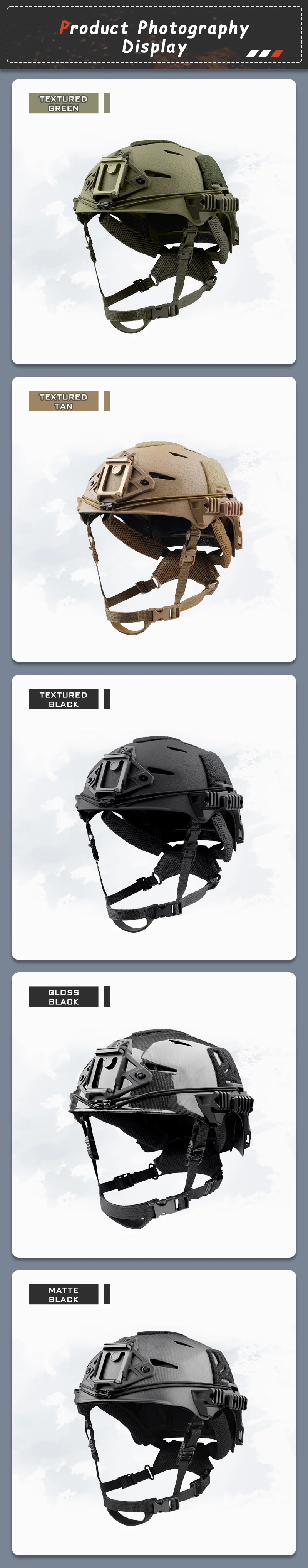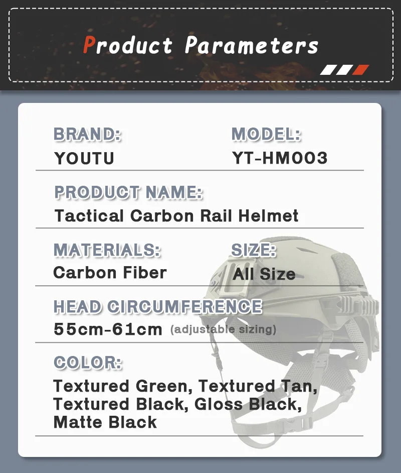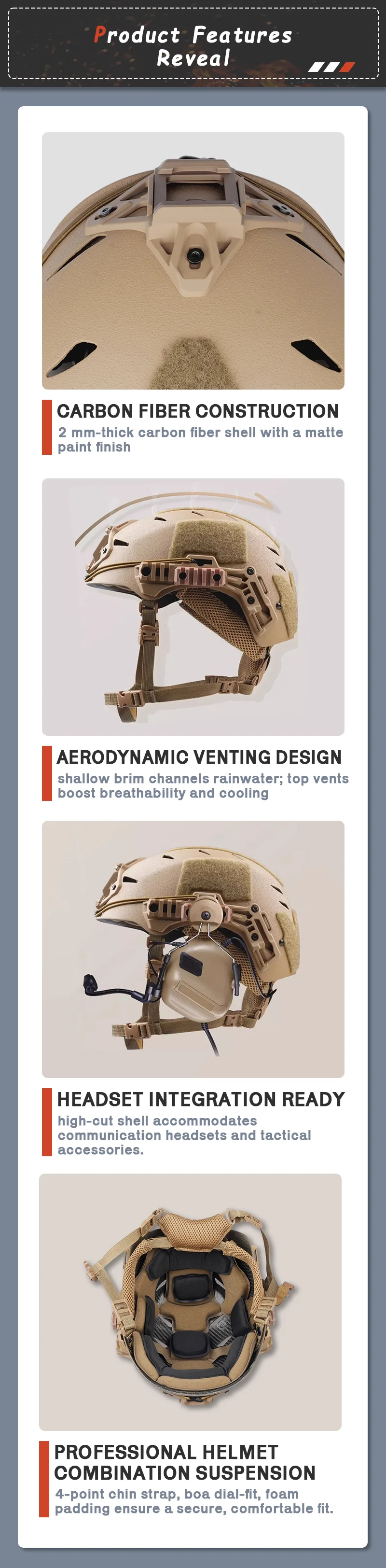 Durable, Impact Resistant, Integrated communication rail, Breathable vents, Lightweight Carbon Fiber, 4-point Chinstrap