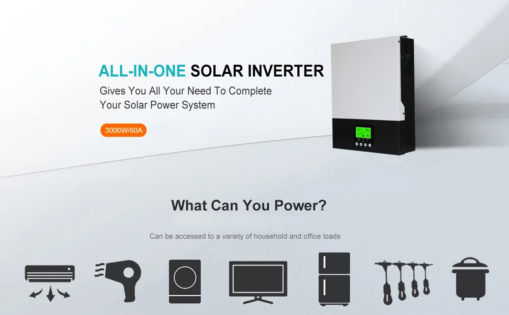3KW MPPT Hybrid Inverter 24V 80A Solar Hybrid Inverter 230V on off Grid Hybrid Inverter Pure Sine Wave Inversor