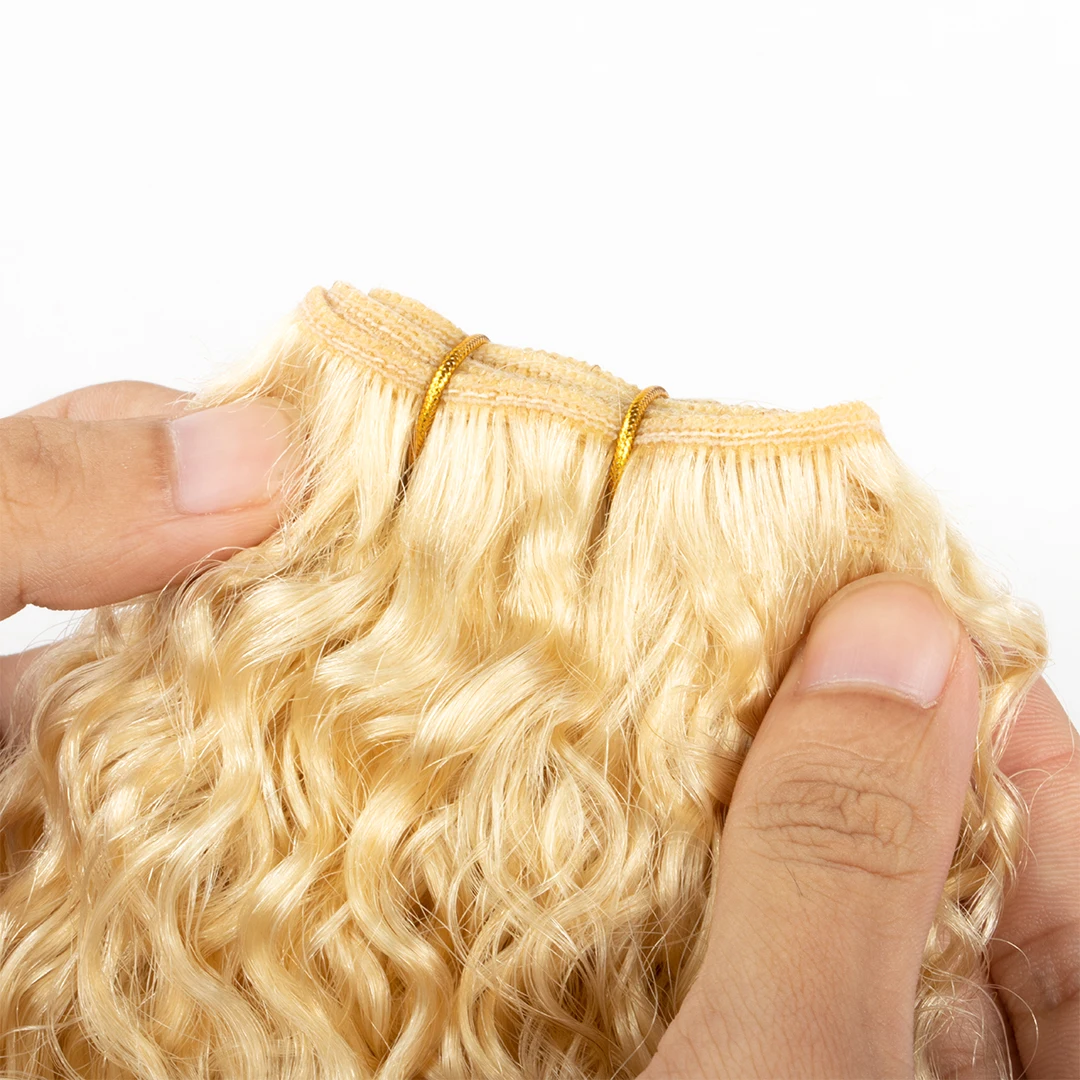 Salon High Quality Human Hair 613 Blonde Kinky Curly Deep Water Kinky Coily 613 Curly Hair Weft for Full Head