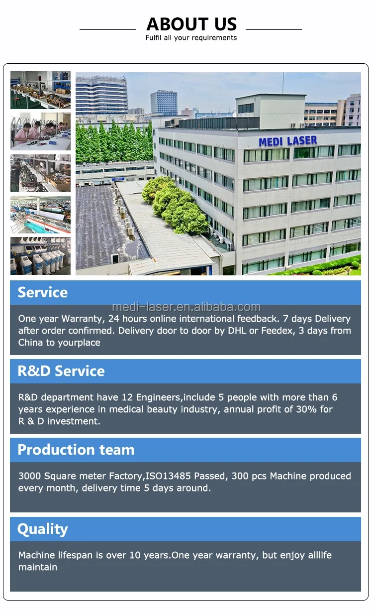 Shanghai Medi Laser (Chinese Name Yimei) located in Shanghai China. Professional in OEM&ODM medical & beauty equipment for Europe, United States and other international Distributors and Salons, and provide 24-hour on line professional after-sales service.