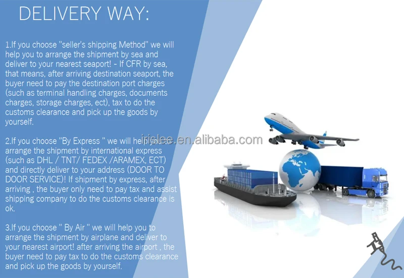 your address (DOOR TO DOOR SERVICE)!If shipment by express, after arriving , the buyer only need to pay tax and assist shipping