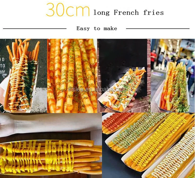 This long fries maker is used to extrude mashed potato into long strips to be fried.This machine is not suitable for strong foods such as raw potatoes. Only for soft foods such as mashed potatoes.Applicable places: hotel, snack car, restaurant, cafe, street food truck etc.