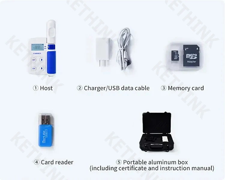 1) Fast and non-destructive plant live detection, measurement only requires inserting the leaves, no need to pick the leaves, does not affect the normal growth of crops, can monitor the leaves throughout the crop growth process, and obtain more scientific analysis results.2) High measurement accuracy (accuracy: ± 1.0 SPAD, repeatability: ± 0.3 SPAD).3) 16GB large storage space, data can be grouped for storage, viewing, and exporting.4) Multi functional USB interface, which can realize data export and charging functions. The instrument can be directly connected to the computer, and data export does not require upper computer software. It can also choose to use a memory card to directly export data, with simple and convenient operation.5) Data browsing: Measurement data can be browsed at any time on the instrument, and abnormal data can be deleted at will.6) High contrast LCD display screen, which can clearly display data even under strong light.7) Low power mode design, built-in large capacity lithium-ion rechargeable battery, with overcharge prevention function, energy-saving and environmentally friendly, and convenient outdoor operation.8) Built in bilingual display in Chinese and English, one click switching, seamless integration.9) Standard configuration: host, charger, USB data cable, memory card, card reader, portable aluminum case, certificate of conformity, instruction manual, etc.