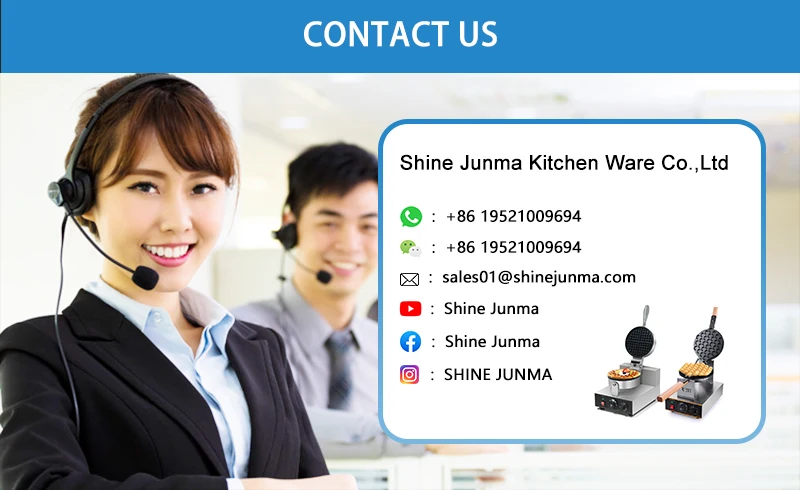 Shuang Junma Group Limited is one of the leading companies which specializes in machine manufacture Waffle Maker, Poffertjes Maker, Creper Maker, Taiyaki Maker, Tokiwado Maker, BBQ Grill, Griddle, Warming Showcase, Chocolate Warming etc.Most of our machines have CE certificate, our products have been exported to Germany, U.S.A. Canada, Mexico, Malaysia, UAE, Saudi,Arabia, India etc.Our products are with good quality, complete specification and sure to satisfy you with reasonable price and quick delivery.Based on the high technical support and a work team with more than ten years' manufacturing experiences, we provide customers withcontinuous service including selling, installing and after -sale service.