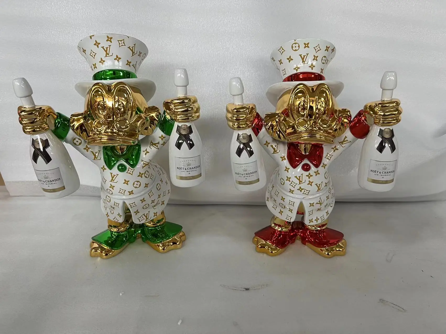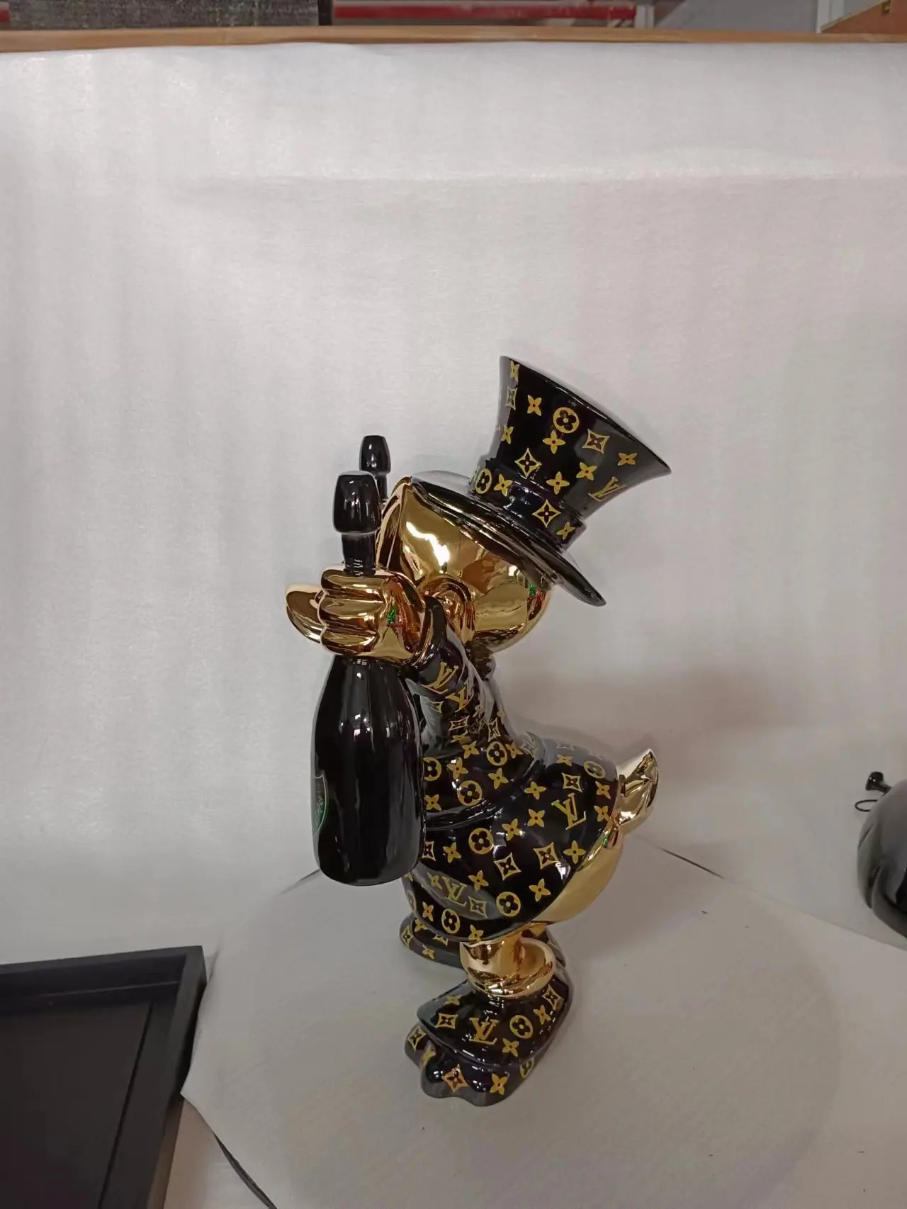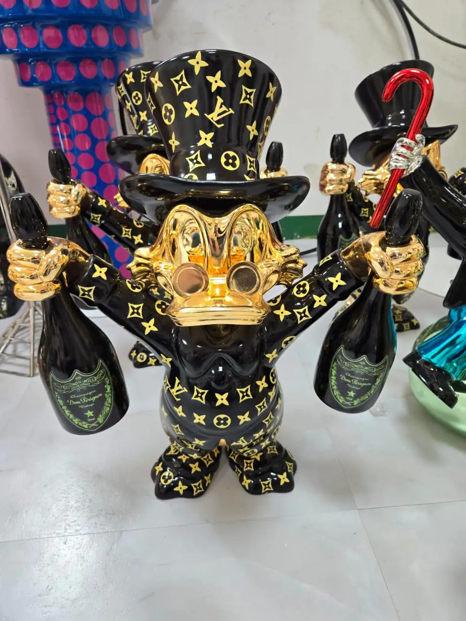 Pop Arts Resin Crafts Chrome Colored Duck with Champagne Bottles Animal Cartoon Character Duck Statue for Arts Gallery