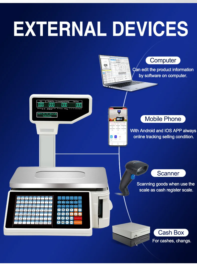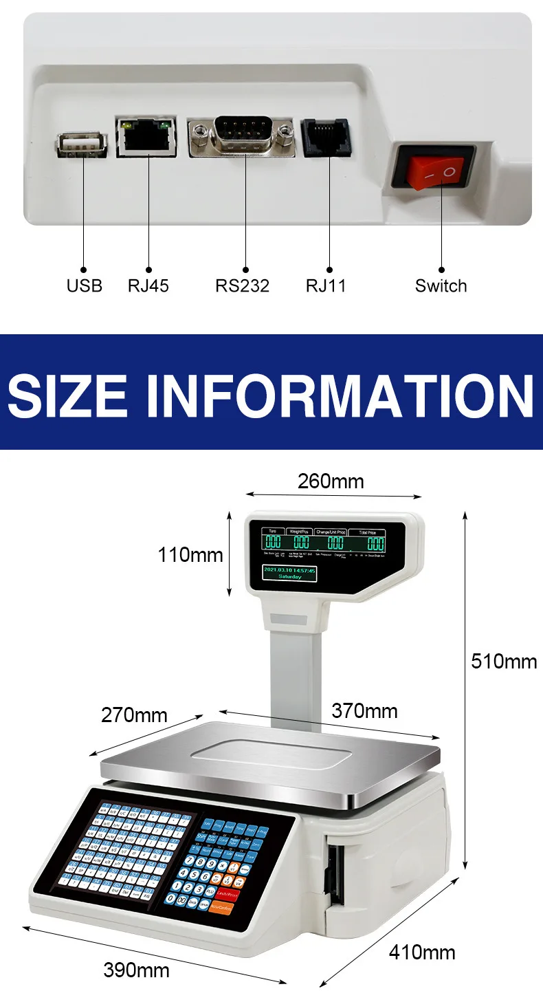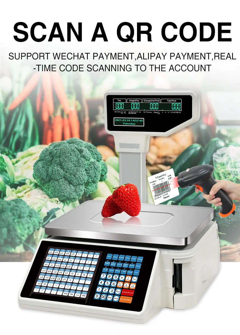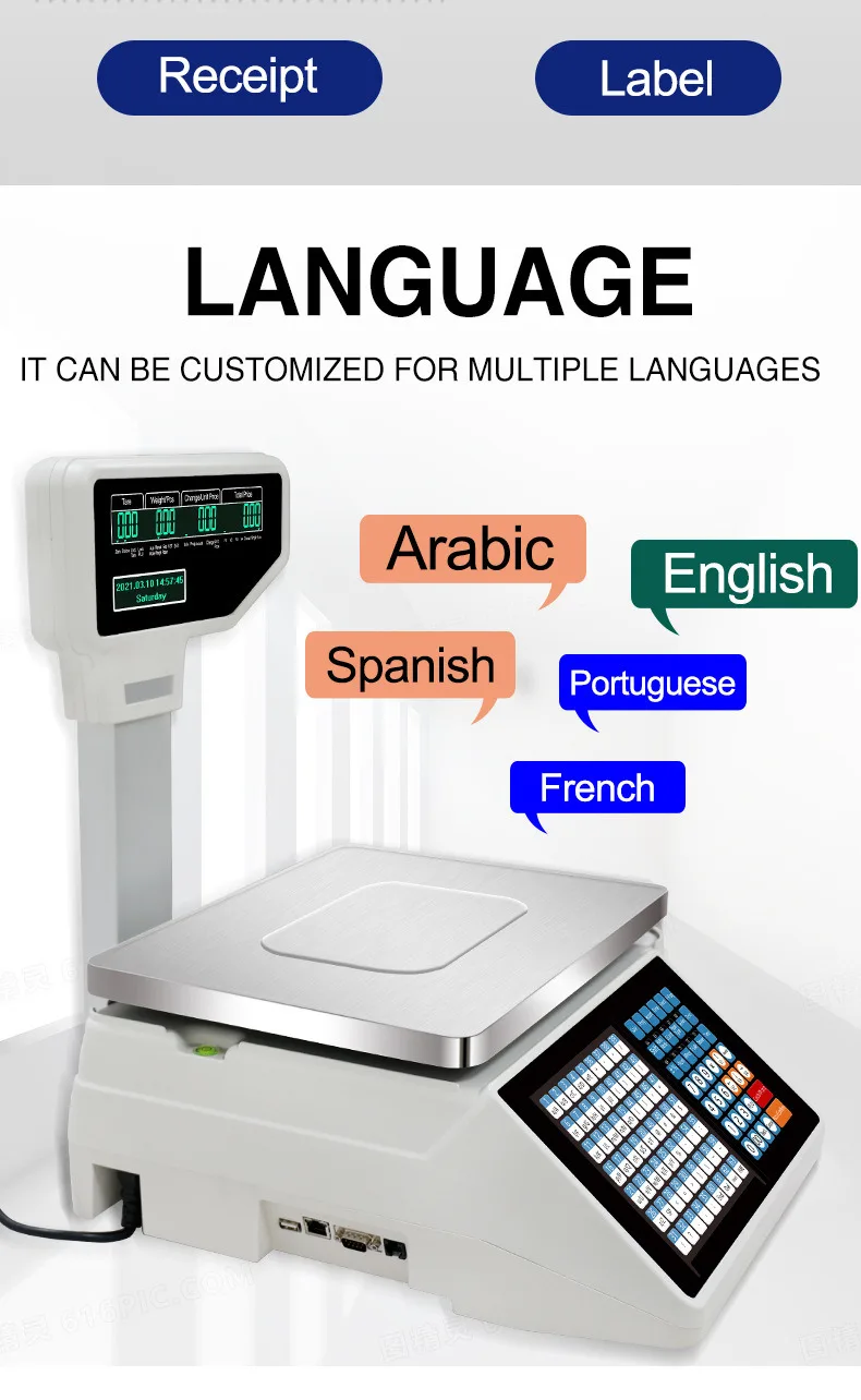 Label and Receipt Printing Scale 15kg Cash Register Barcode Printing Electronic Receipt Scale 30kg Digital Weighing Scale Arabic