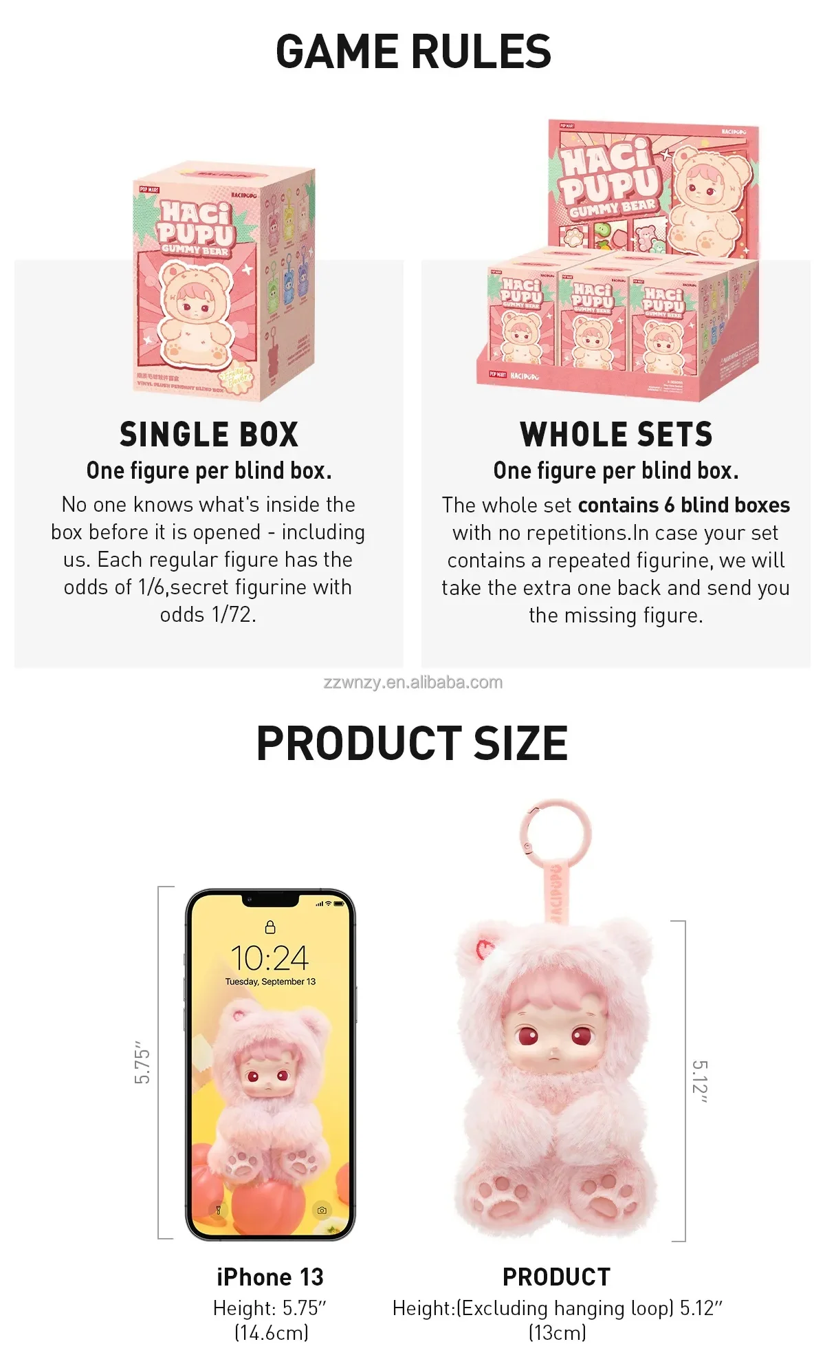 POPMART HACIPUPU Gummy Bear Series Vinyl Plush Pendant Lovely Keychains Toys Doll Blind Box Ornaments Gift Collection