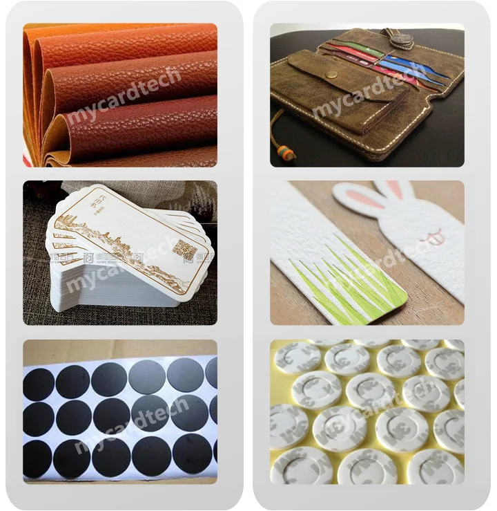 Mycard Portable PU Fabric Leather Die Cutter is specially designed for cutting shapes out of leather, fabric, paper, cardboard, rubber or other soft materials. It features exquisite look and durable use with the adoption of high quality steel. MC-DCM-P3 is perfect for cutting leather, paper tags, fabric, cloth, silicone rubber, soft plastic, self adhesive paper label stickers, and more. Mycard paper cloth leather die cutting press machines are widely used by leather crafters, paper crafters, card makers, dress designers and general crafters. They are even used in classrooms to facilitate learning and create projects.
