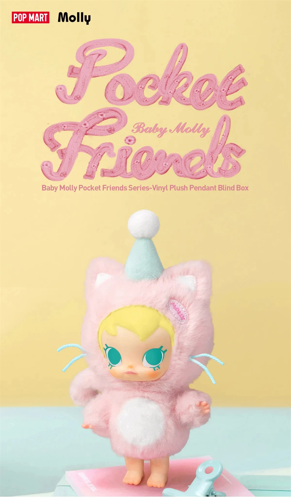 - POP MART PUCKY Baby Molly Pocket Friends Series: Baby Molly Pocket Friends Series Vinyl Plush Blind Box: The blind box contains a random figure from a specific series. Each blind box only contains one figure. No one, including us, knows what's inside. This collection contains 6 blind box figures, one of them might be the secret edition.