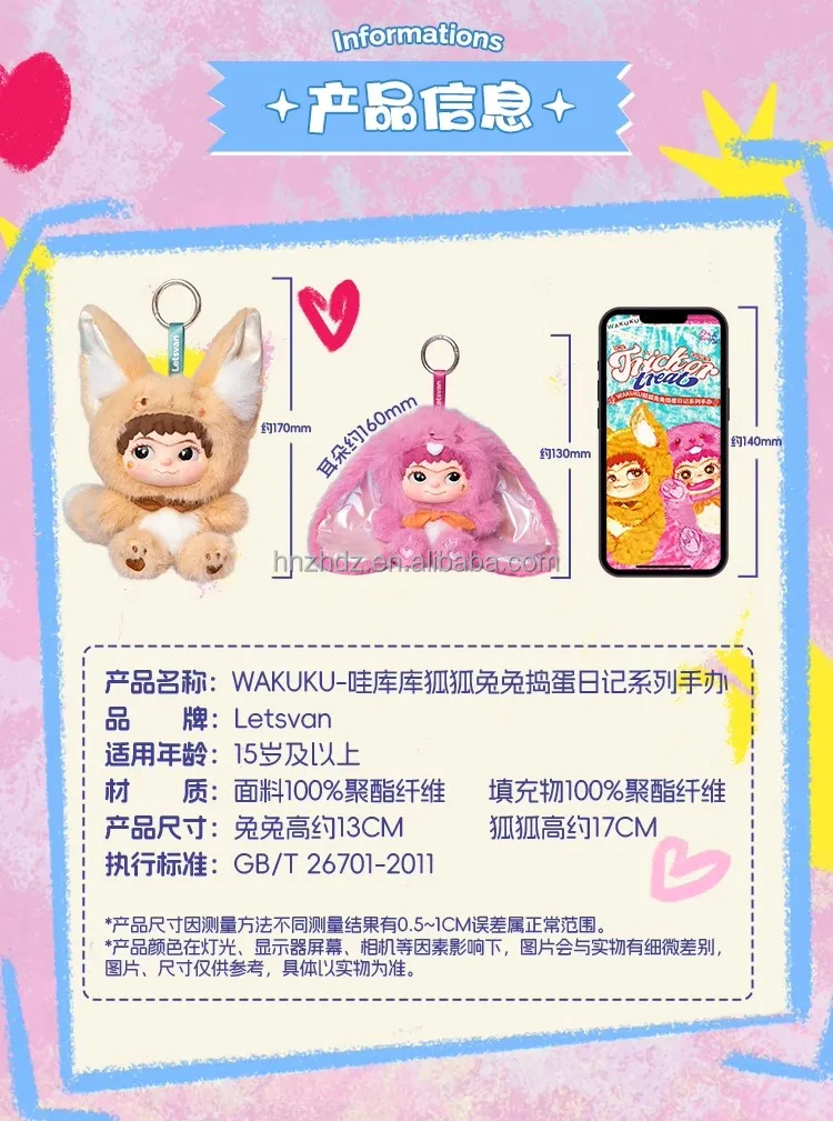 Original Chinese Product WAKUKU Fox and Rabbit Mischief Diary Series V2 Plush Keychain Blind Box Mystery Cute Desktop Decoration