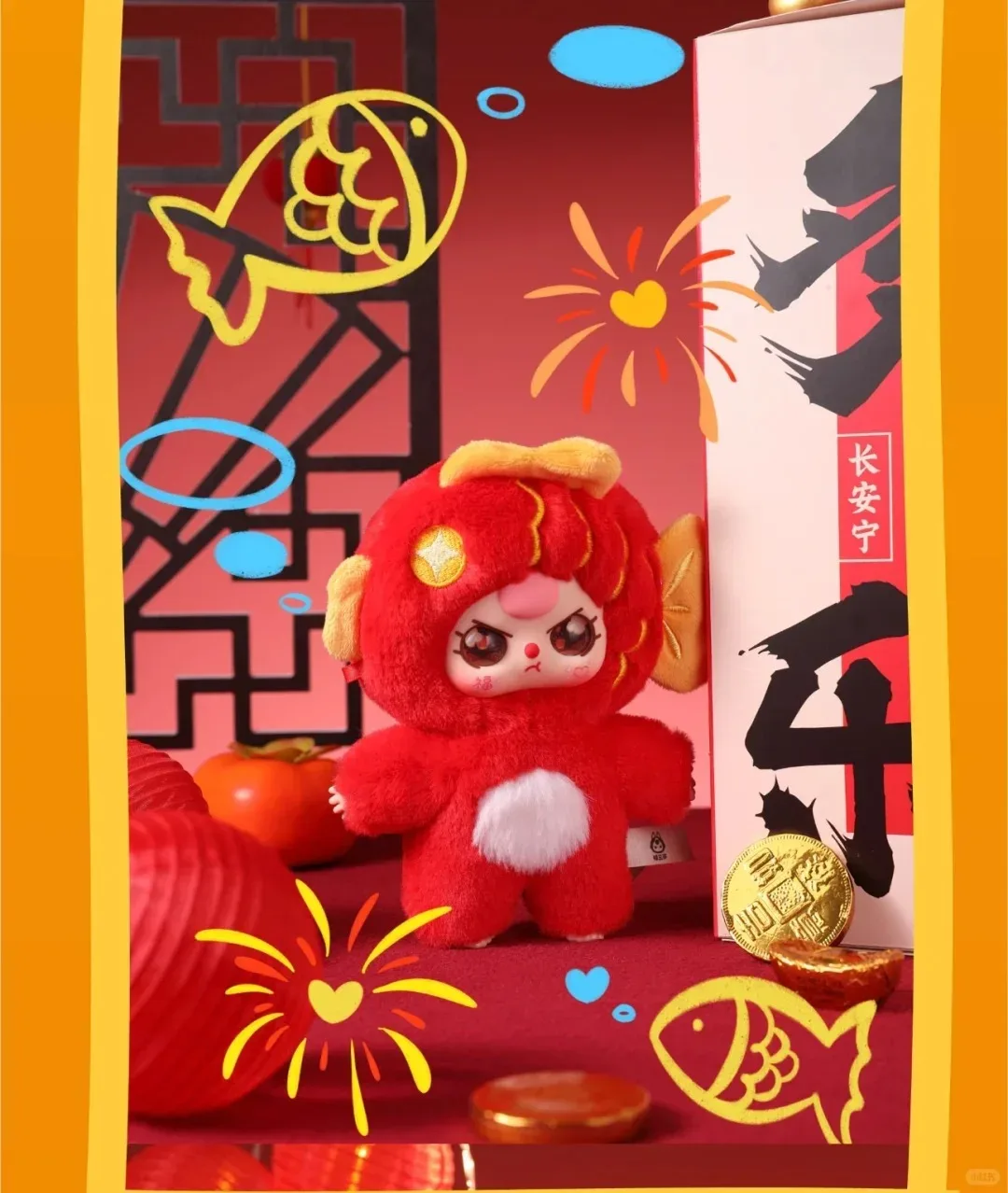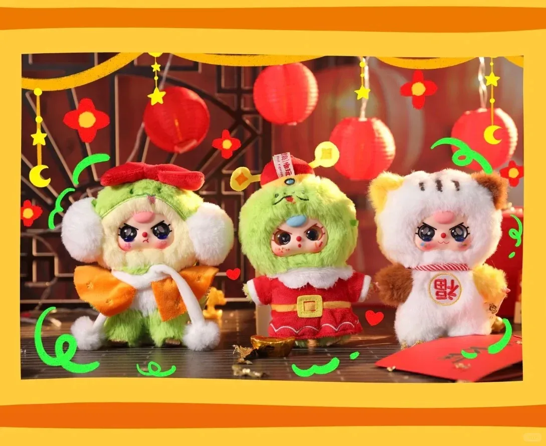 - Series:Baby Three-New Year Plush Series Blind Box (Includes 8 regular styles + 2 hidden styles, styles are random).