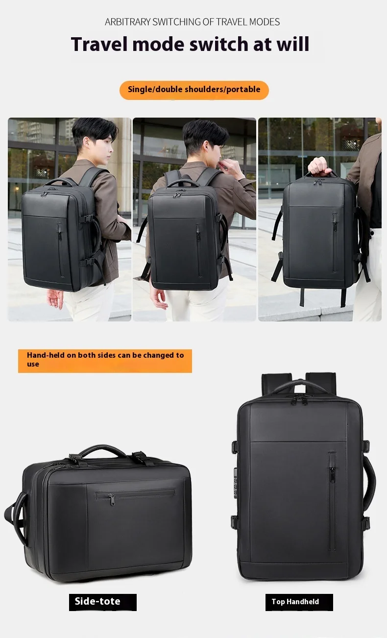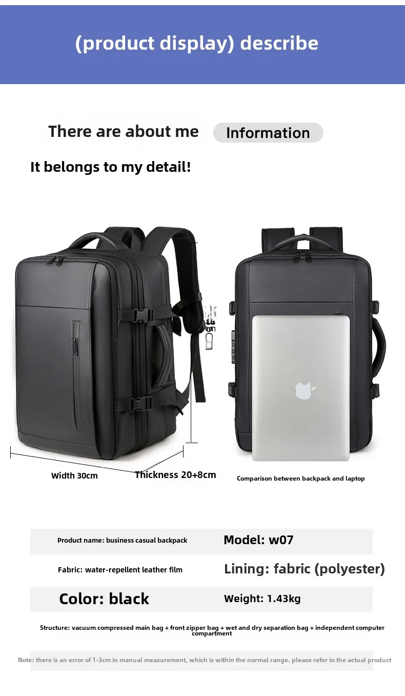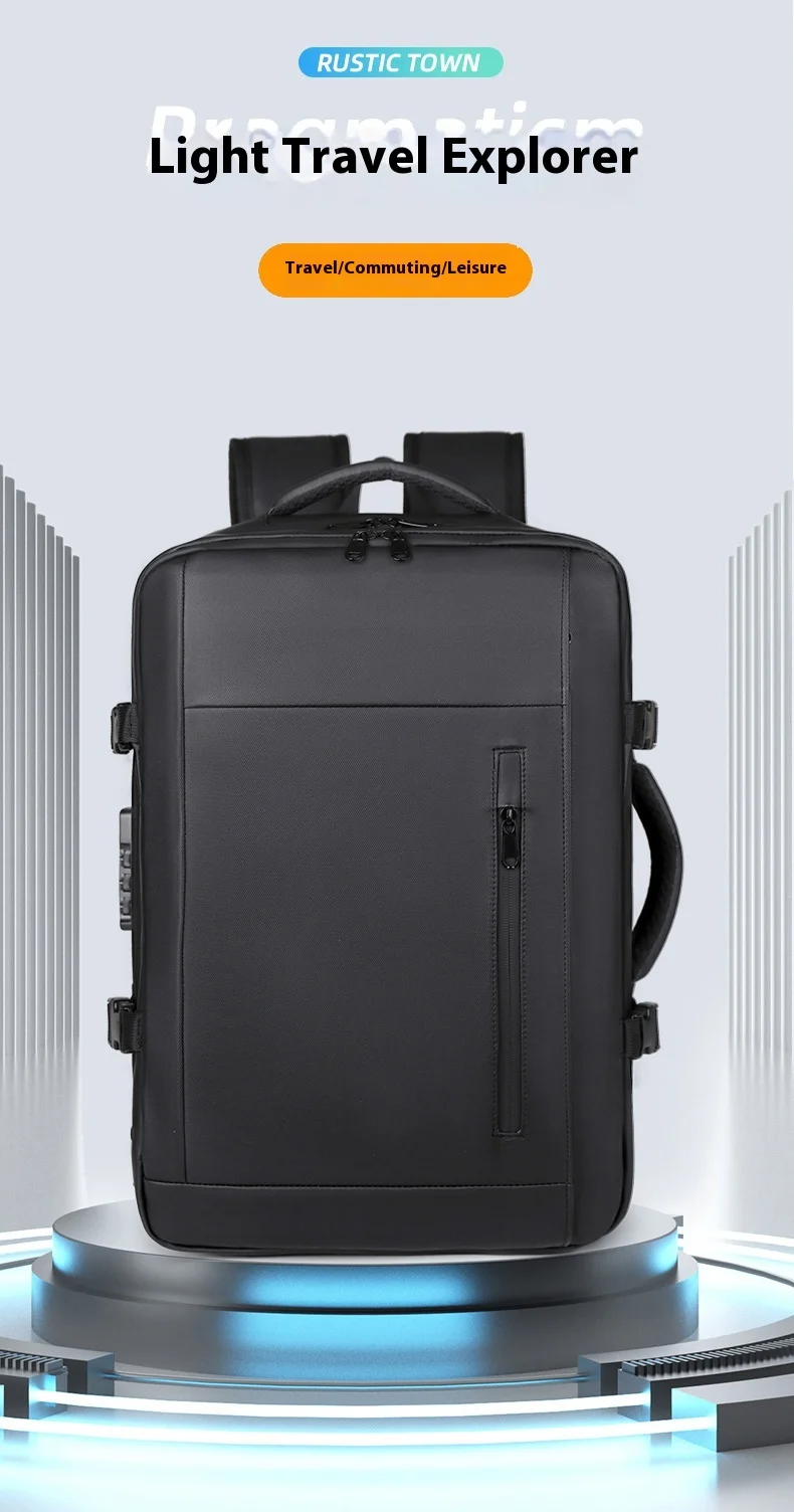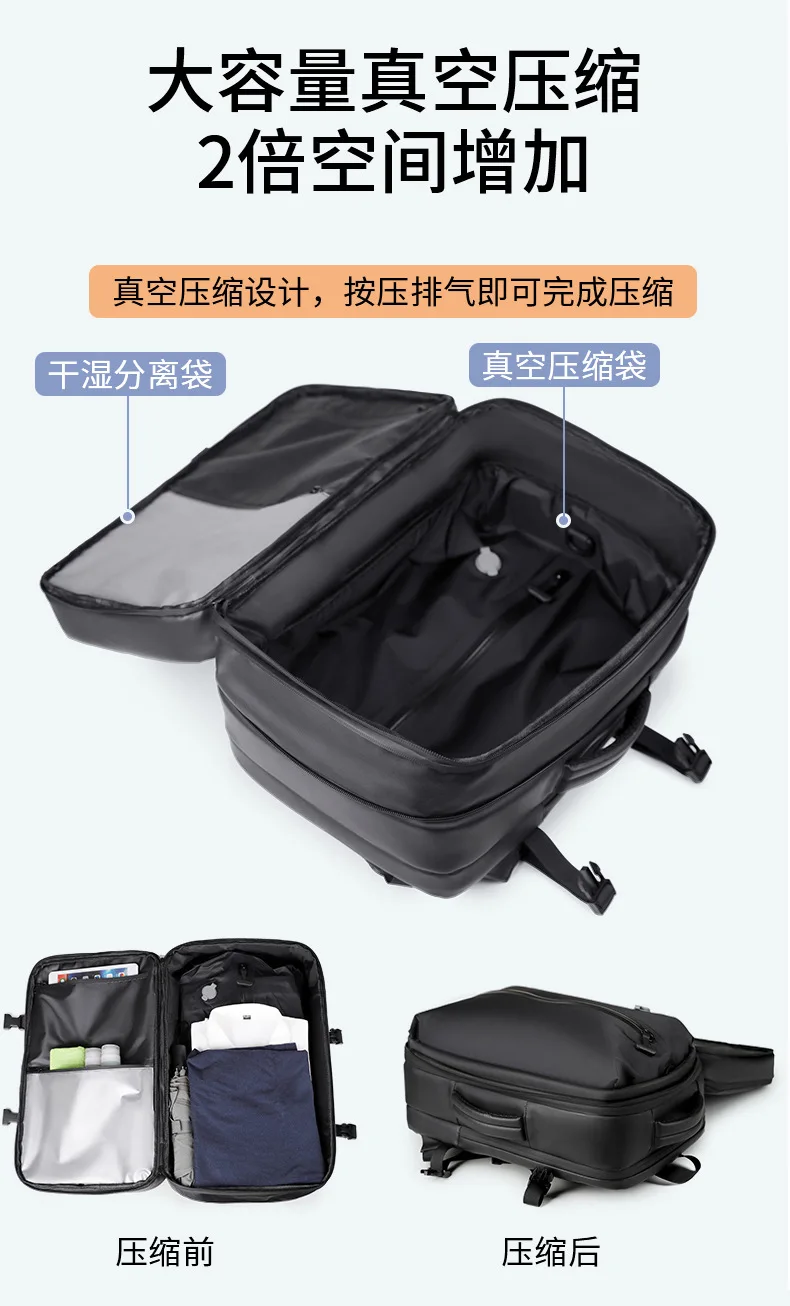 Large Capacity Men's Waterproof Oxford Backpack Vacuum Compression Expandable Password Lock Dry Wet Separation Travel Bag