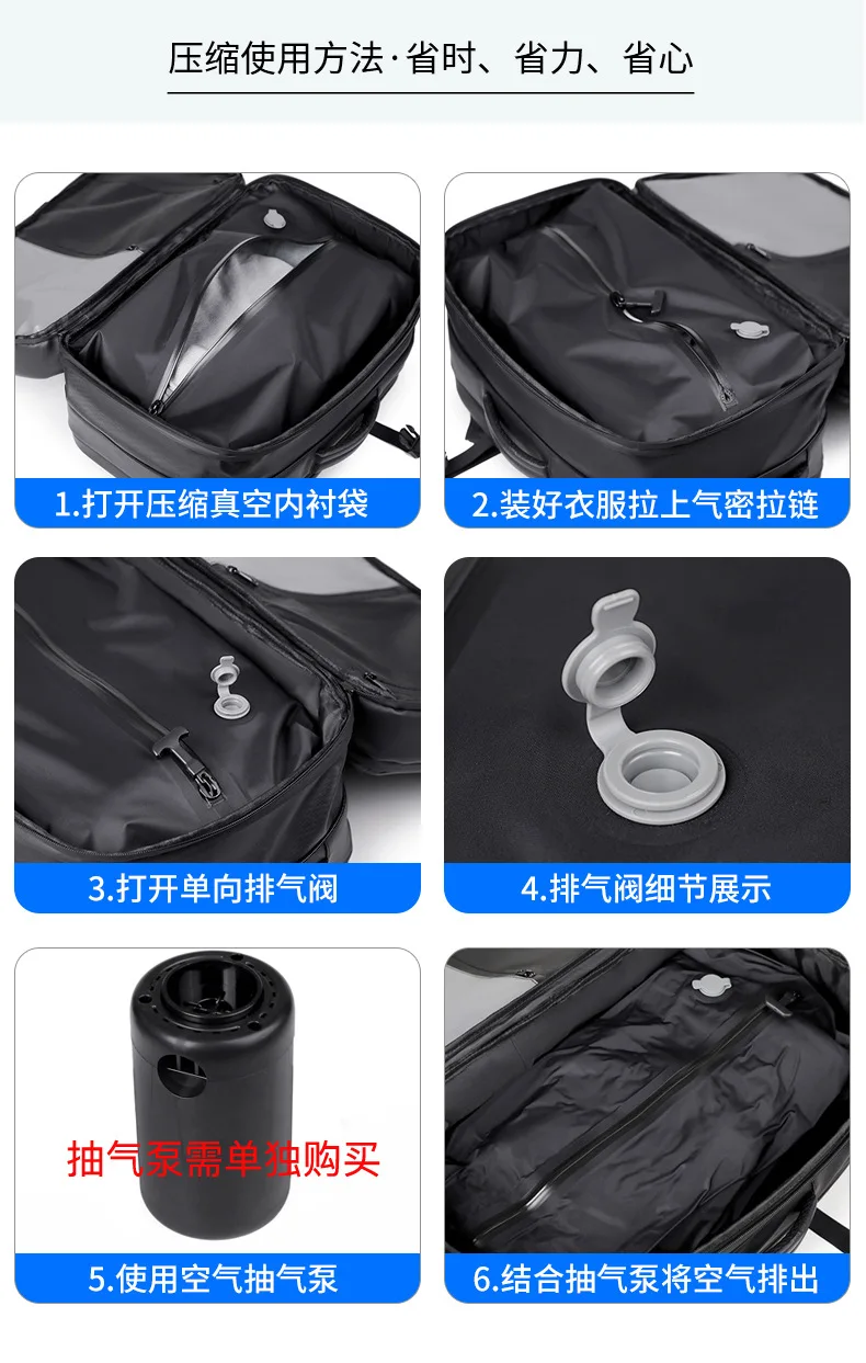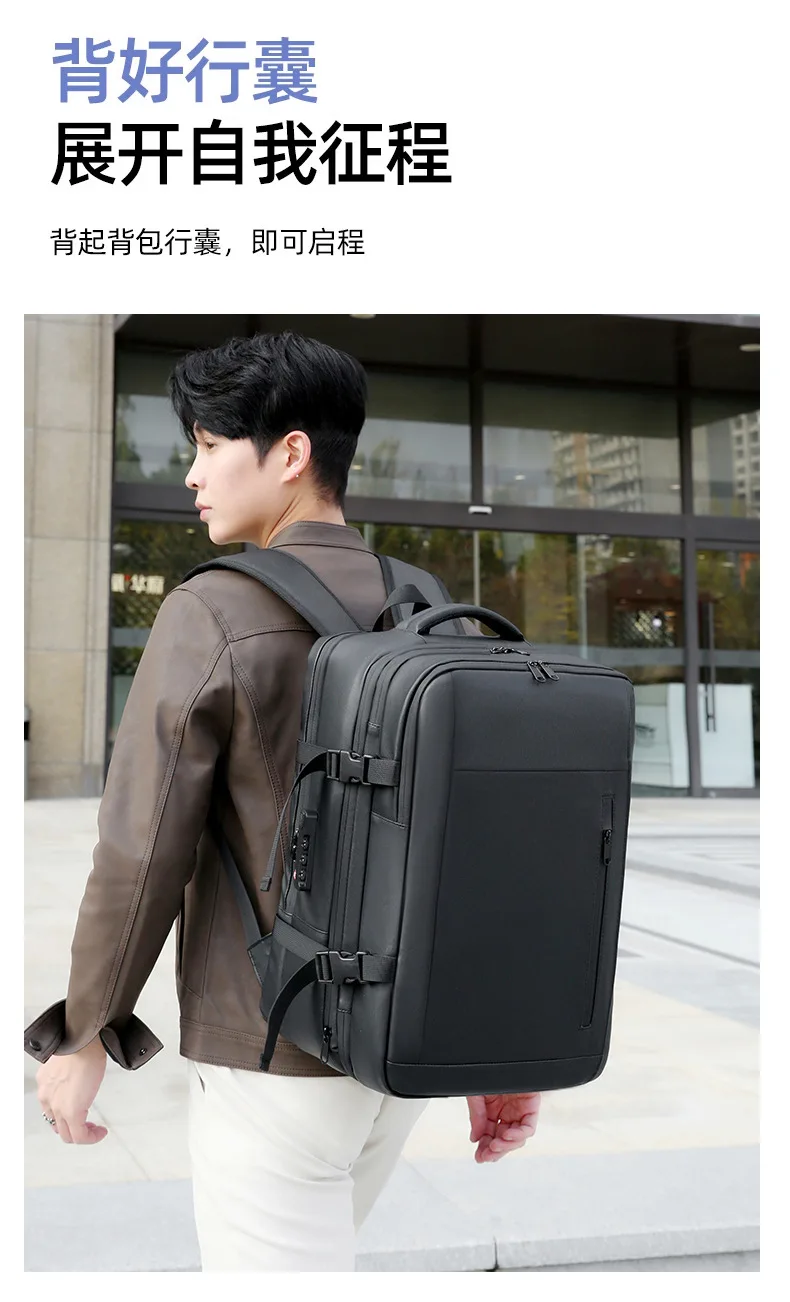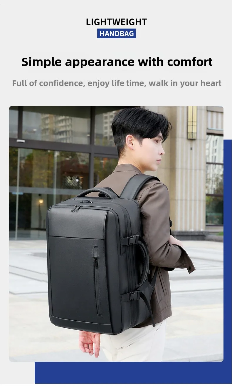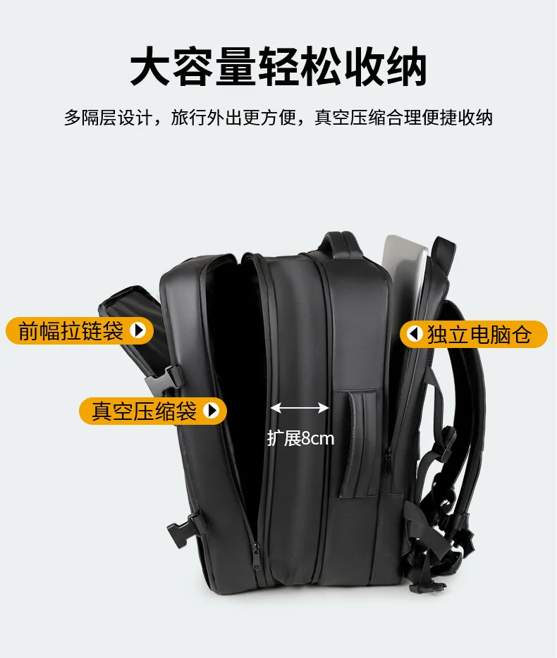 Large Capacity Men's Waterproof Oxford Backpack Vacuum Compression Expandable Password Lock Dry Wet Separation Travel Bag