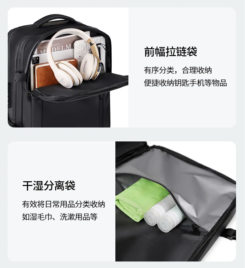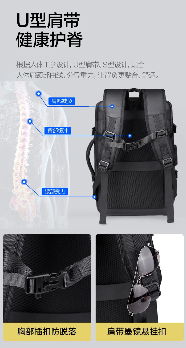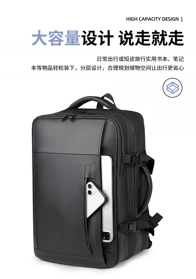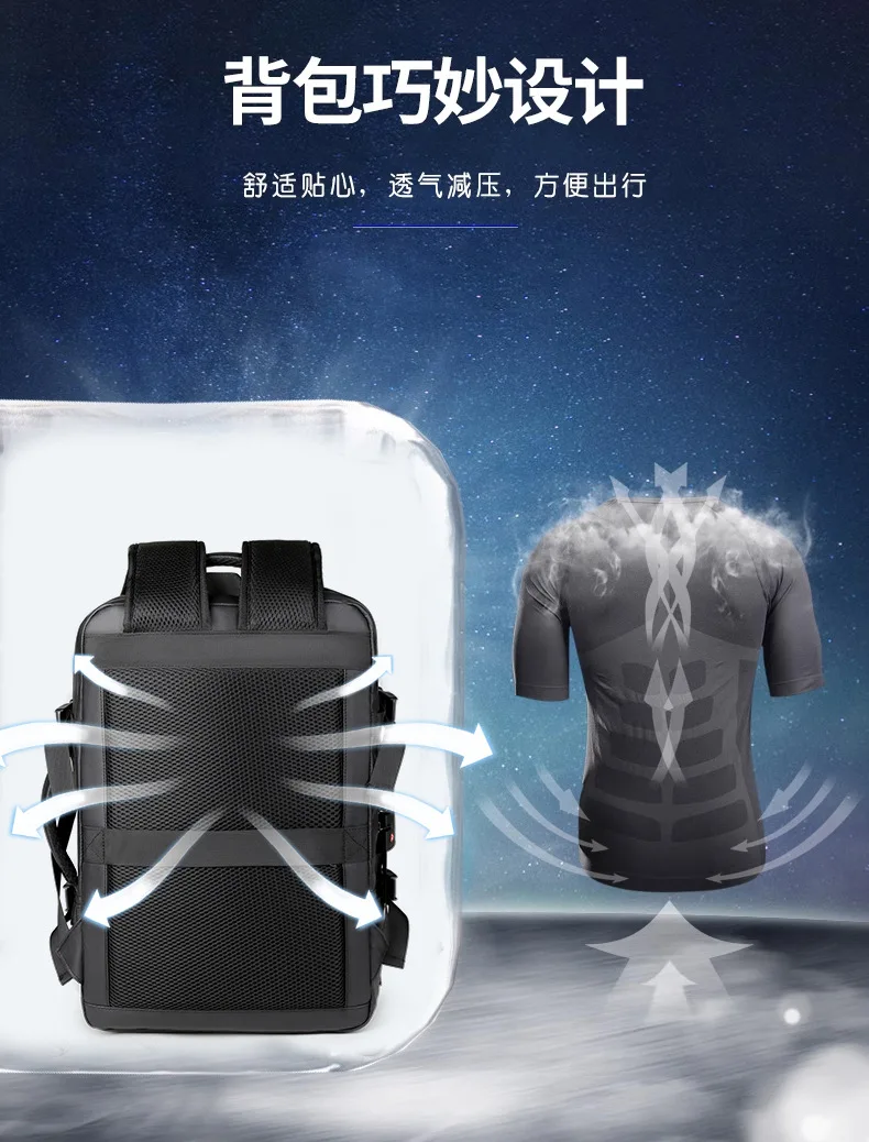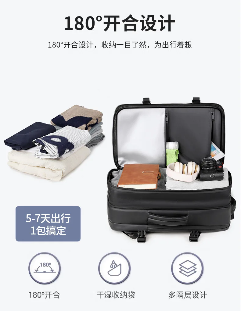 Large Capacity Men's Waterproof Oxford Backpack Vacuum Compression Expandable Password Lock Dry Wet Separation Travel Bag
