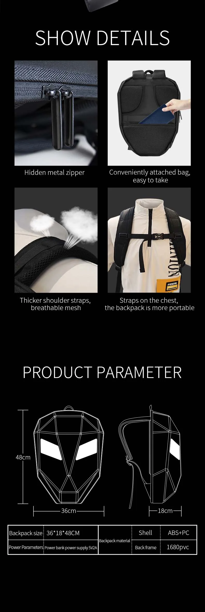 Riding Led Backpack Model: Iron Man(carbon Fiber) Big Size 36*18*48cm Helmet Backpack Durable High Quality Travel&riding Bag