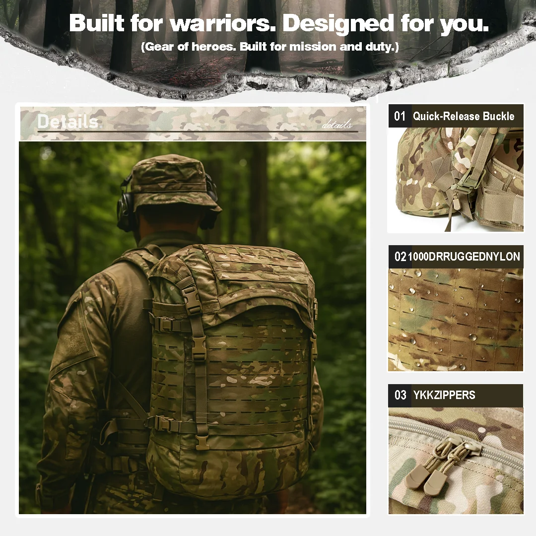 AKMAX FILBE Tactical Backpack Laser-Cut MOLLE MAIN Pack, Multi-Terrain Camouflage, Large Capacity Outdoor Gear Bag