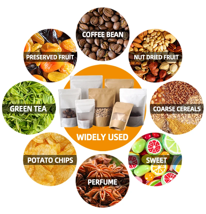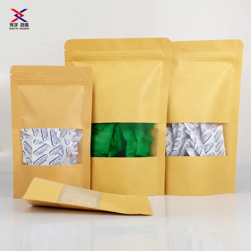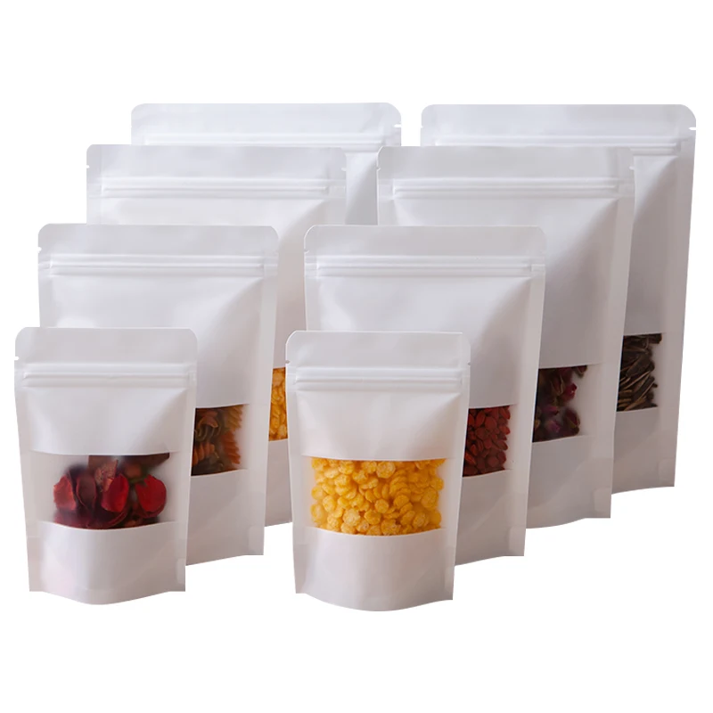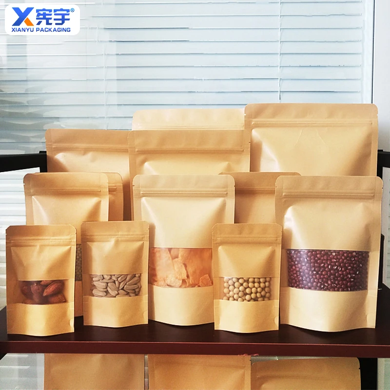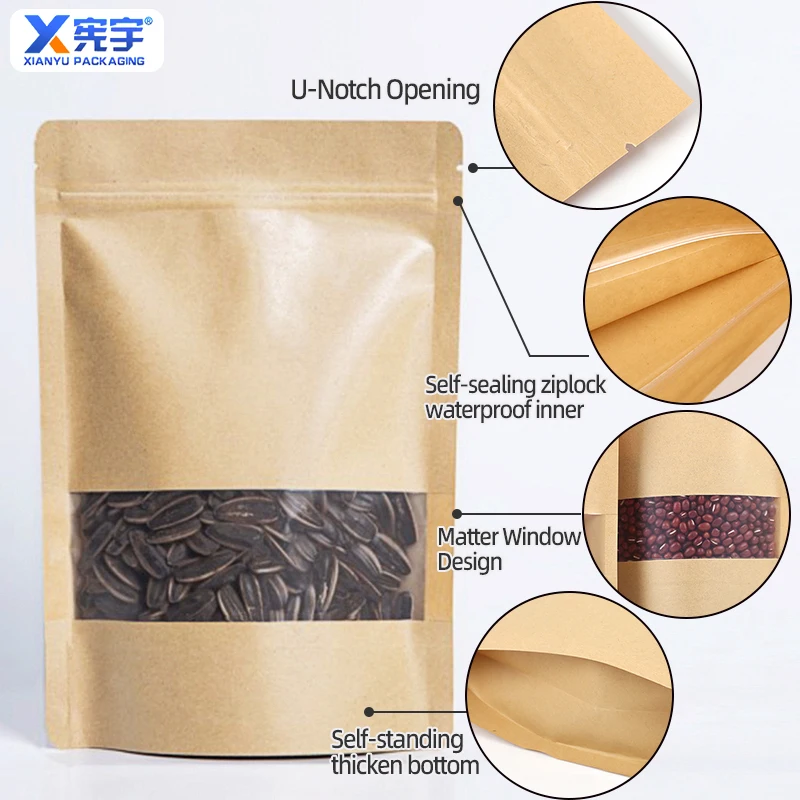 Black Kraft Paper Zipper Food Bag Moisture Proof Plastic Stand up Paper Bag With Windows Customizable Logo