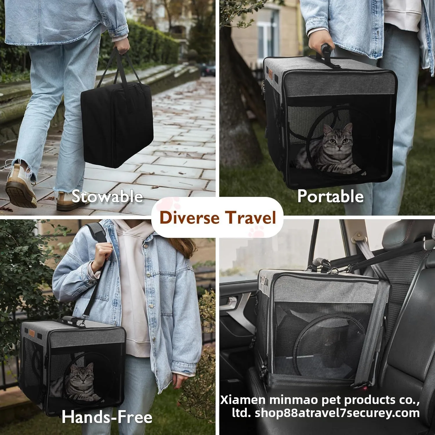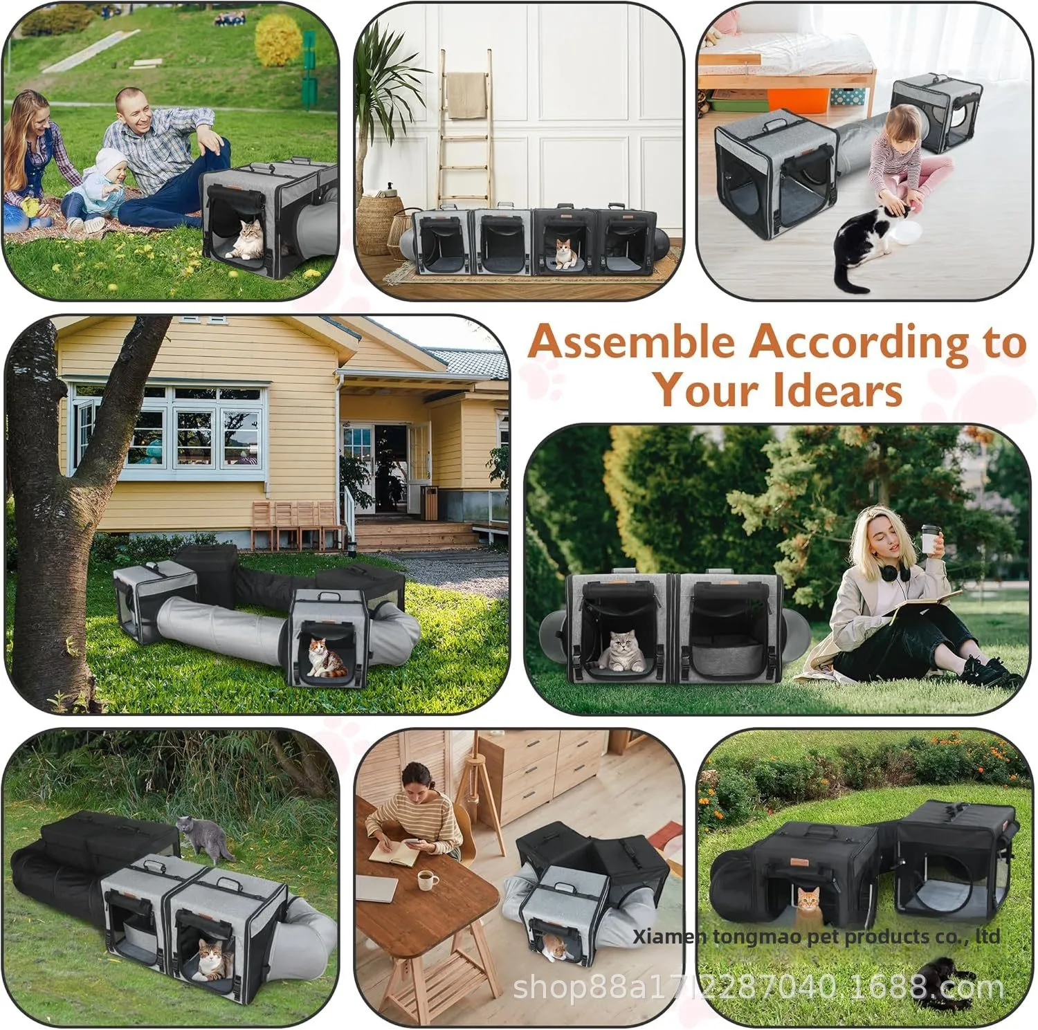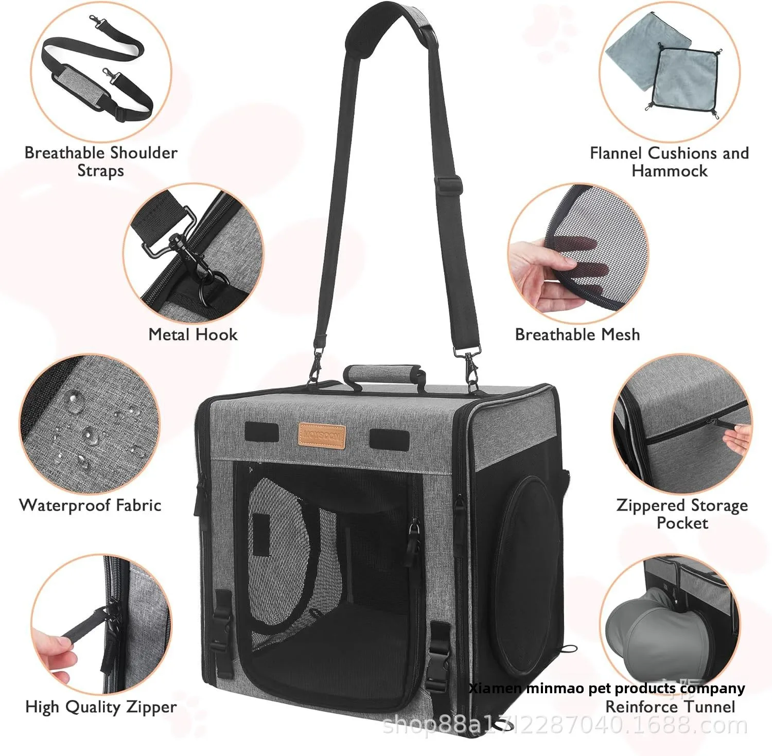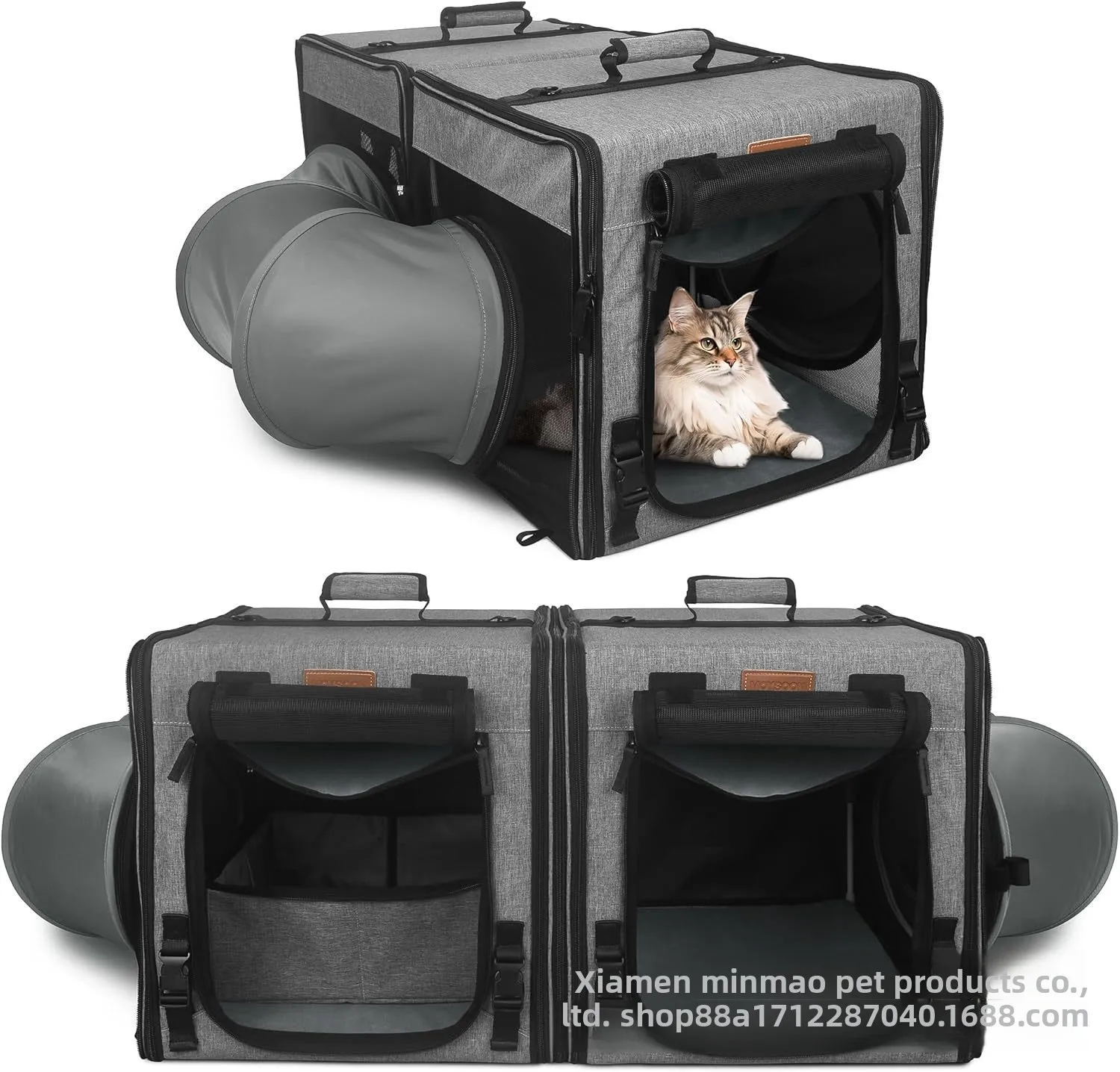Dual Tunnel Oxford Material Pet Carrier Backpack Fashionable Solid Pattern Zipper Closure Free Travel Double Channel Dog Bag