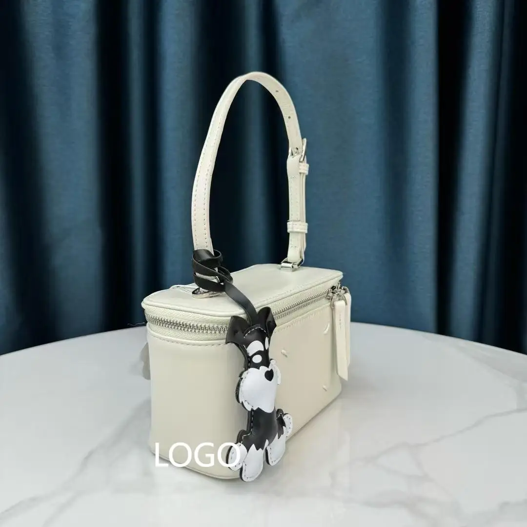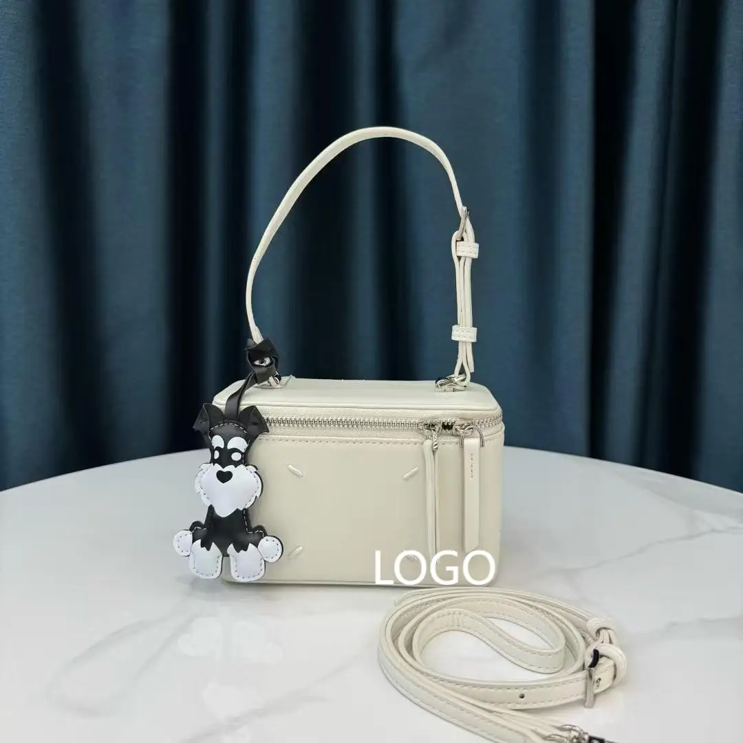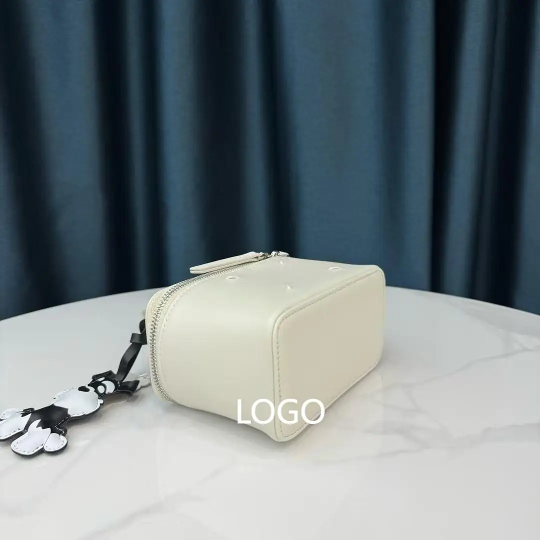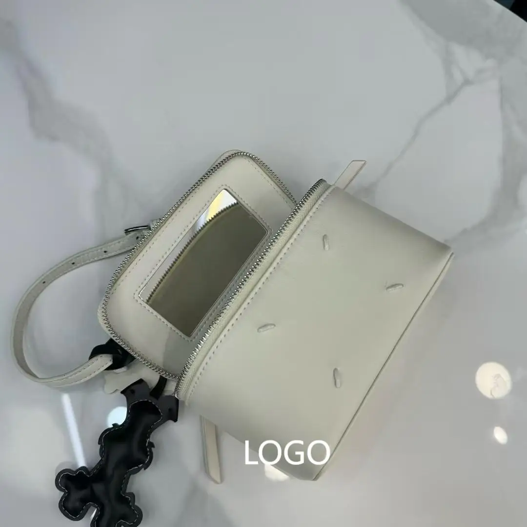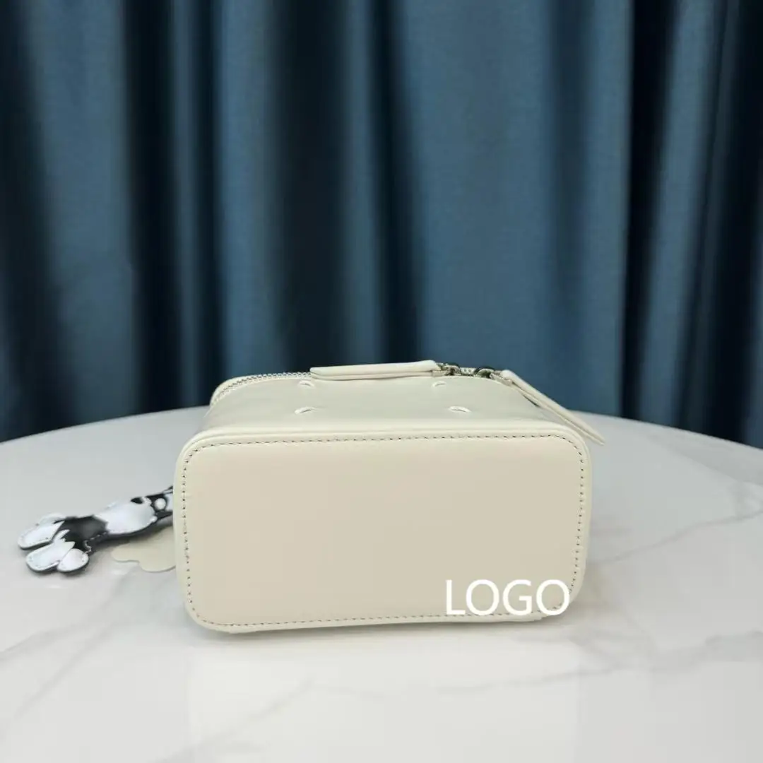 Women's Fashion Sheepskin Leather Makeup Bag with Zipper Closure and Shoulder Strap Reflective Mirror for On-the-Go Application