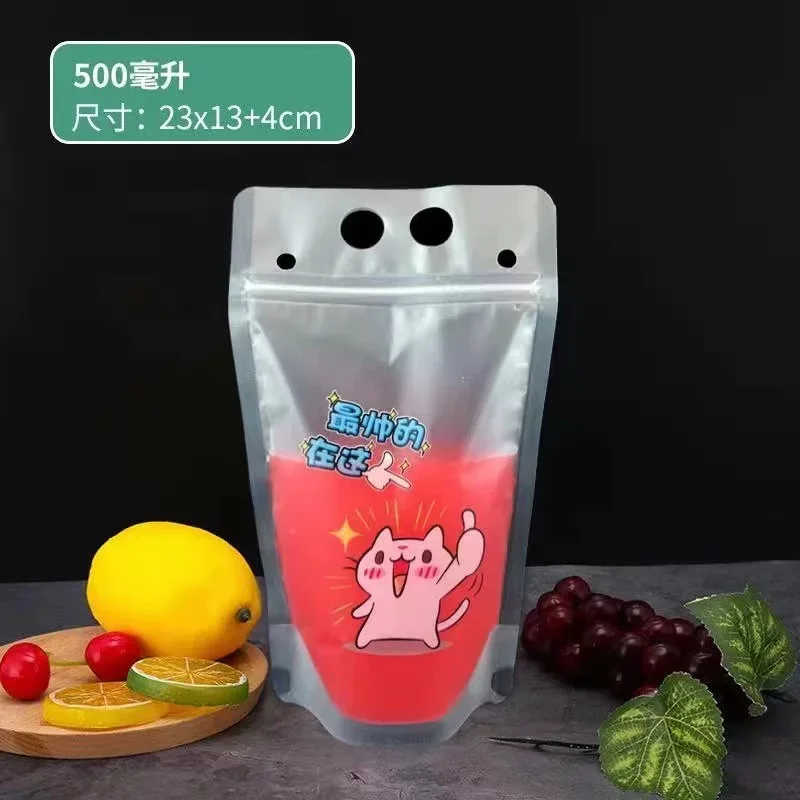 Stand up Plastic Zipper Pack Packaging Bag Drink Pouch With Straw